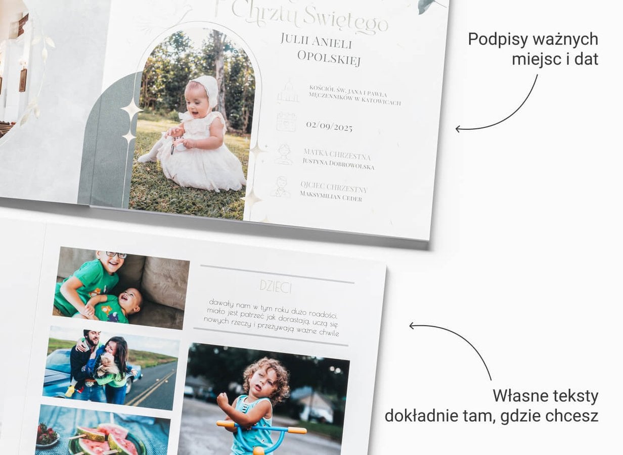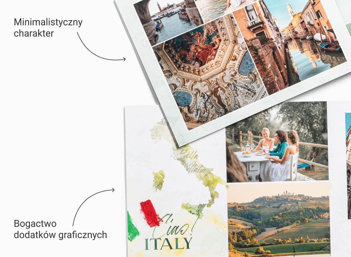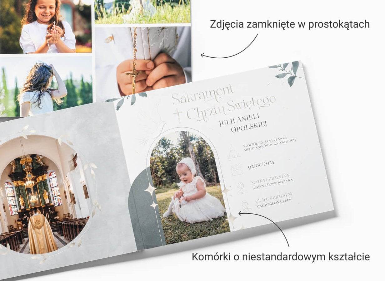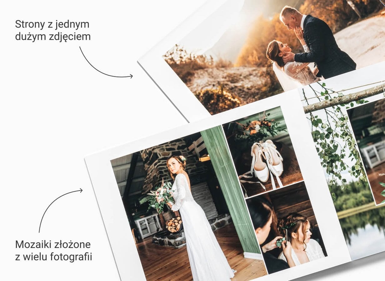 Fotoalbum - rozkłada się „na płasko”, a więc elementy, które znajdą się na łączeniu stron są widoczne w całości.