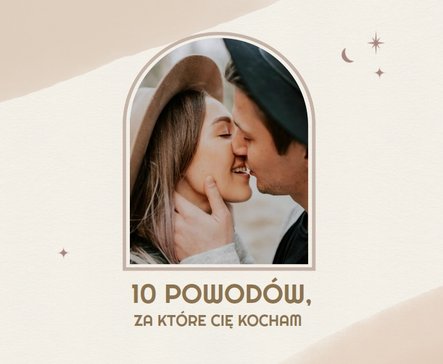 Miłość można wyrażać na wiele sposobów, najprostszym z nich są słowa. Z szablonem "10 powodów za które Cię kocham" wyrazisz swoje uczucia najbliższej Ci osobie. Delikatna kolorystyka podkreśli czułość waszych zdjęć, a złote dodatki dodadzą im elegancji. Stwórz fotoksiążkę złożoną z ulubionych wspomnień ze swoją parą i podkreśl ich wartość czułymi tekstami. Dodawaj więcej stron i powodów, jeśli masz na to ochotę!