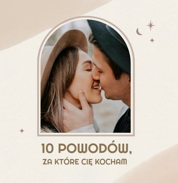 Miłość można wyrażać na wiele sposobów, najprostszym z nich są słowa. Z szablonem "10 powodów za które Cię kocham" wyrazisz swoje uczucia najbliższej Ci osobie. Delikatna kolorystyka podkreśli czułość waszych zdjęć, a złote dodatki dodadzą im elegancji. Stwórz fotoksiążkę złożoną z ulubionych wspomnień ze swoją parą i podkreśl ich wartość czułymi tekstami. Dodawaj więcej stron i powodów, jeśli masz na to ochotę!