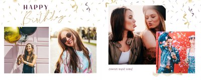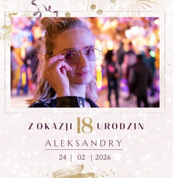 Szablon "18 lat minęło" to propozycja prezentowa pełna odcieni fioletów, złota oraz srebra. Kolory te są motywem przewodnim tego szablonu. Wewnątrz znajdziesz także urodzinowe elementy graficzne, złote napisy, a także nietypowe układy zdjęć.