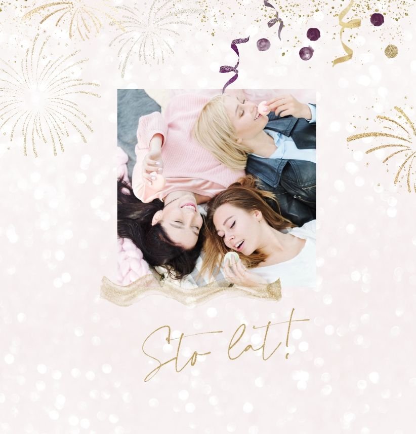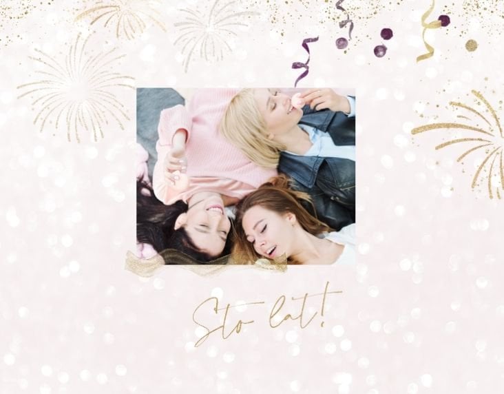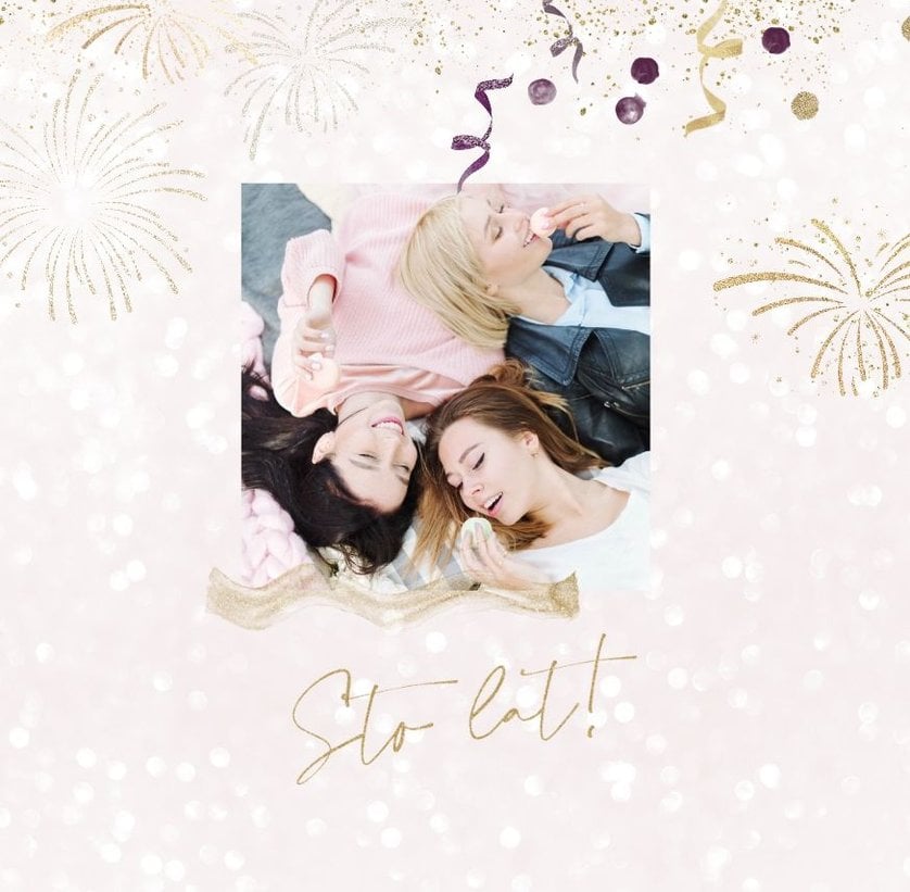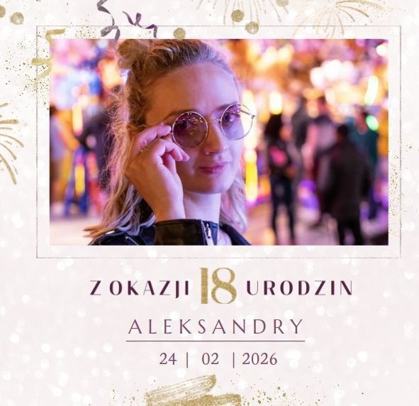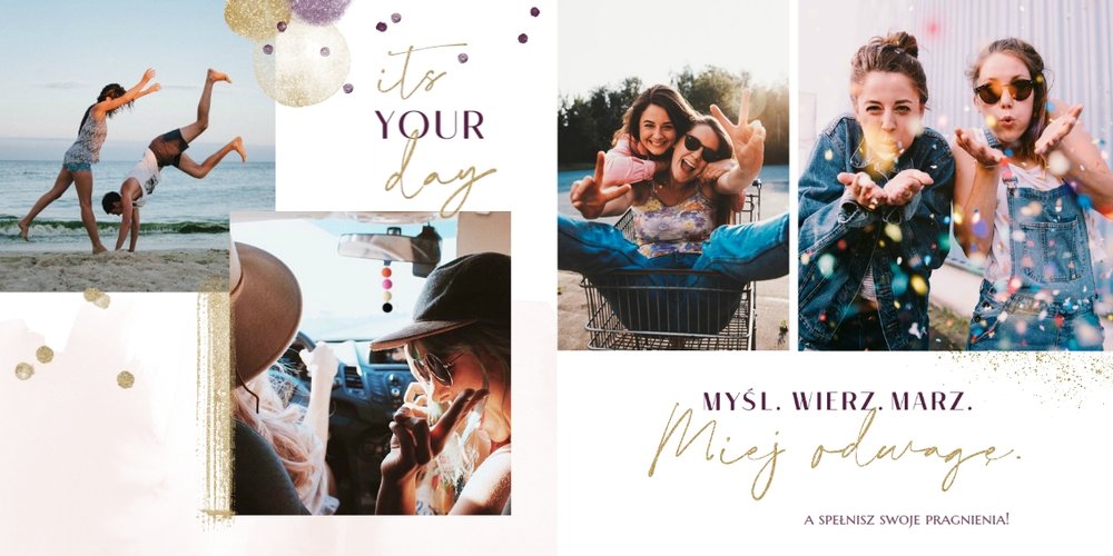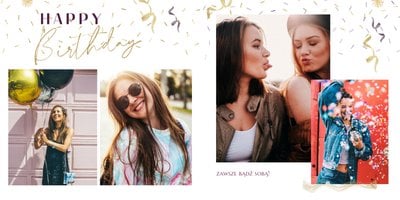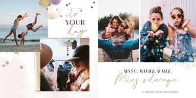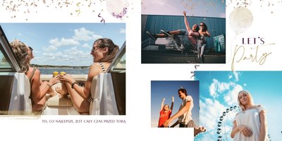 Szablon "18 lat minęło" to propozycja prezentowa pełna odcieni fioletów, złota oraz srebra. Kolory te są motywem przewodnim tego szablonu. Wewnątrz znajdziesz także urodzinowe elementy graficzne, złote napisy, a także nietypowe układy zdjęć.