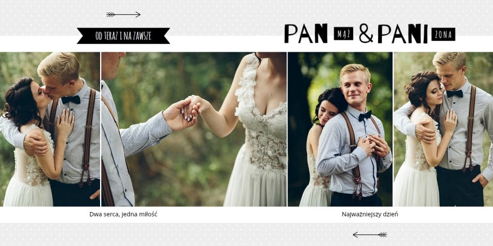 Szablon Bardzo Bardzo Kocham Cię świetnie sprawdzi się przy projektowaniu fotoksiążki z wesela lub ze ślubnej sesji zdjęciowej. Dzięki niemu wydrukujesz najpiękniejsze chwile w wyjątkowej formie. Kolorystyka w różnych odcieniach szarości, czarne napisy i minimalistyczna grafika sprawiają, że książka wygląda bardzo oryginalnie. Szablon Bardzo Bardzo Kocham Cię tworzy serię razem z szablonem Bardzo Bardzo Dziękujemy - podziękowaniami dla rodziców Młodej Pary.