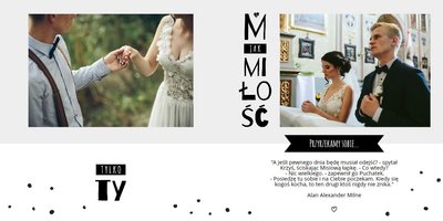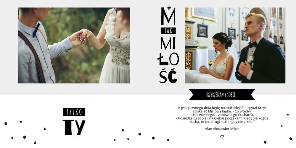 Szablon Bardzo Bardzo Kocham Cię świetnie sprawdzi się przy projektowaniu fotoksiążki z wesela lub ze ślubnej sesji zdjęciowej. Dzięki niemu wydrukujesz najpiękniejsze chwile w wyjątkowej formie. Kolorystyka w różnych odcieniach szarości, czarne napisy i minimalistyczna grafika sprawiają, że książka wygląda bardzo oryginalnie. Szablon Bardzo Bardzo Kocham Cię tworzy serię razem z szablonem Bardzo Bardzo Dziękujemy - podziękowaniami dla rodziców Młodej Pary.