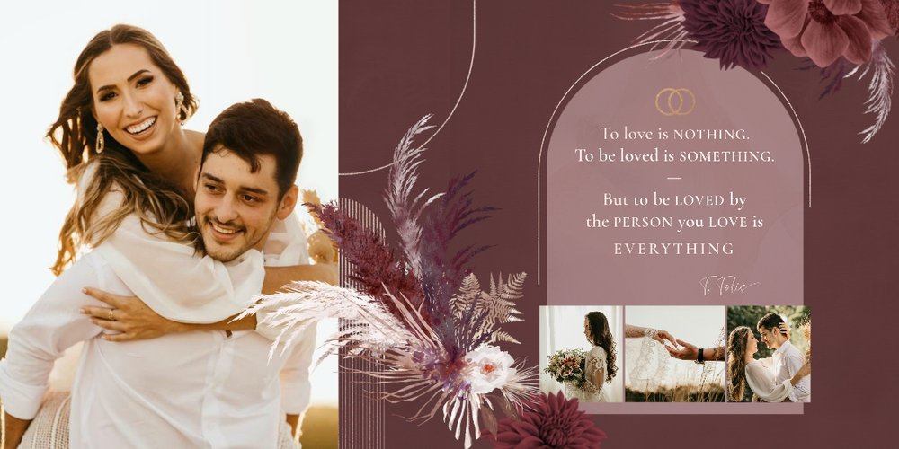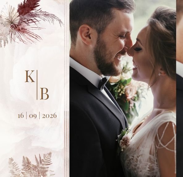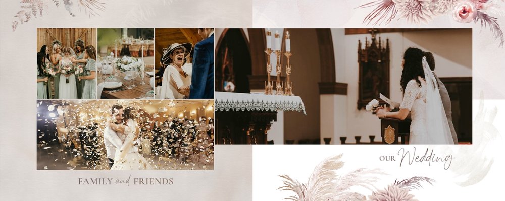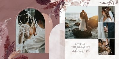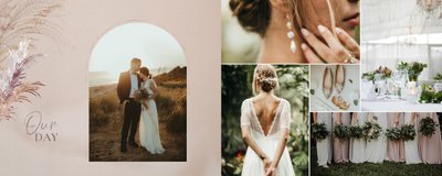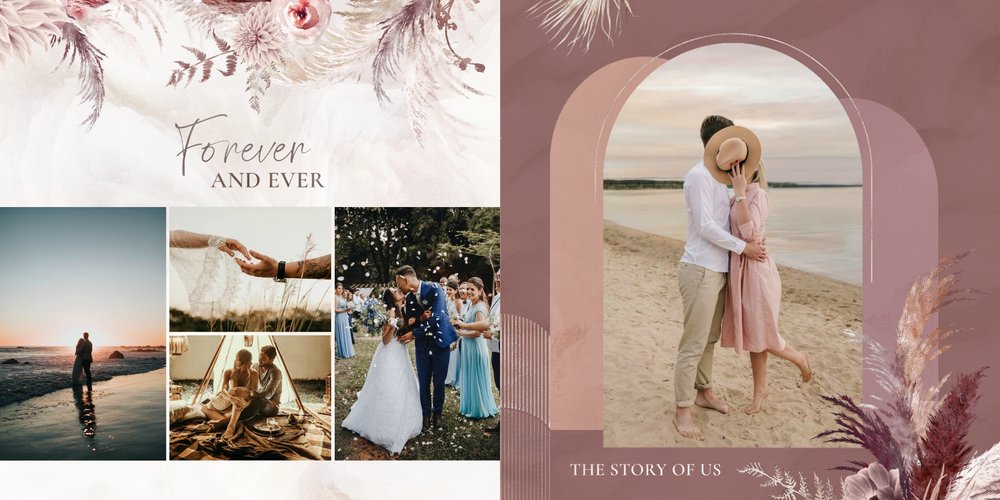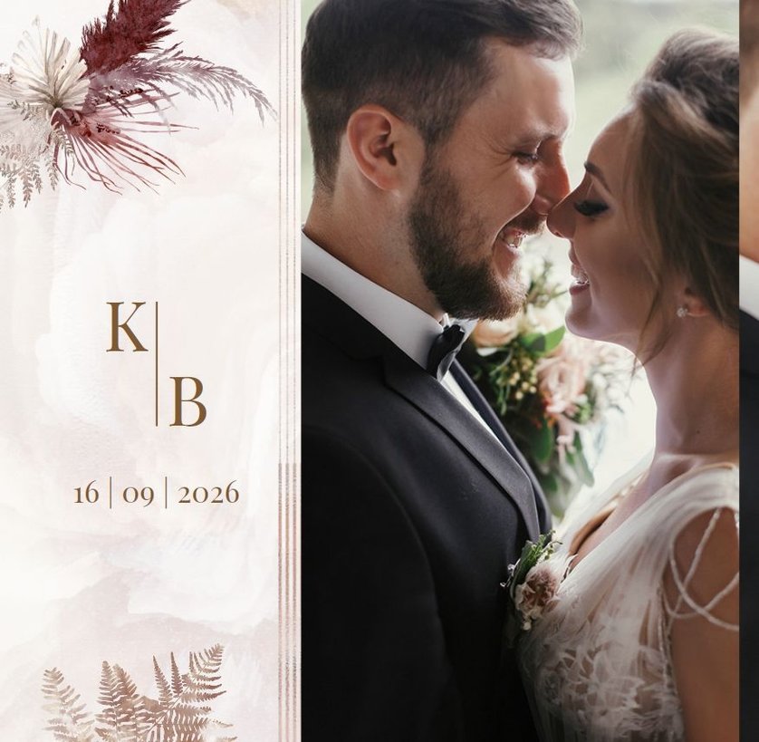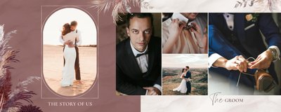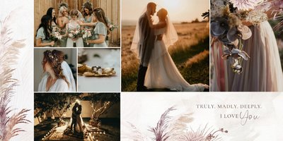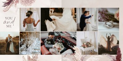 Twoje ślubne fotografie przy akompaniamencie lekkiego wzornictwa w stylu boho utworzą wspaniałe kompozycje na stronach fotoalbumu. Szablon "Boho Wedding" to idealne miejsce dla tych niepowtarzalnych wspomnień, które doświadcza się tylko raz w życiu.
