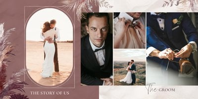 Twoje ślubne fotografie przy akompaniamencie lekkiego wzornictwa w stylu boho utworzą wspaniałe kompozycje na stronach fotoalbumu. Szablon "Boho Wedding" to idealne miejsce dla tych niepowtarzalnych wspomnień, które doświadcza się tylko raz w życiu.