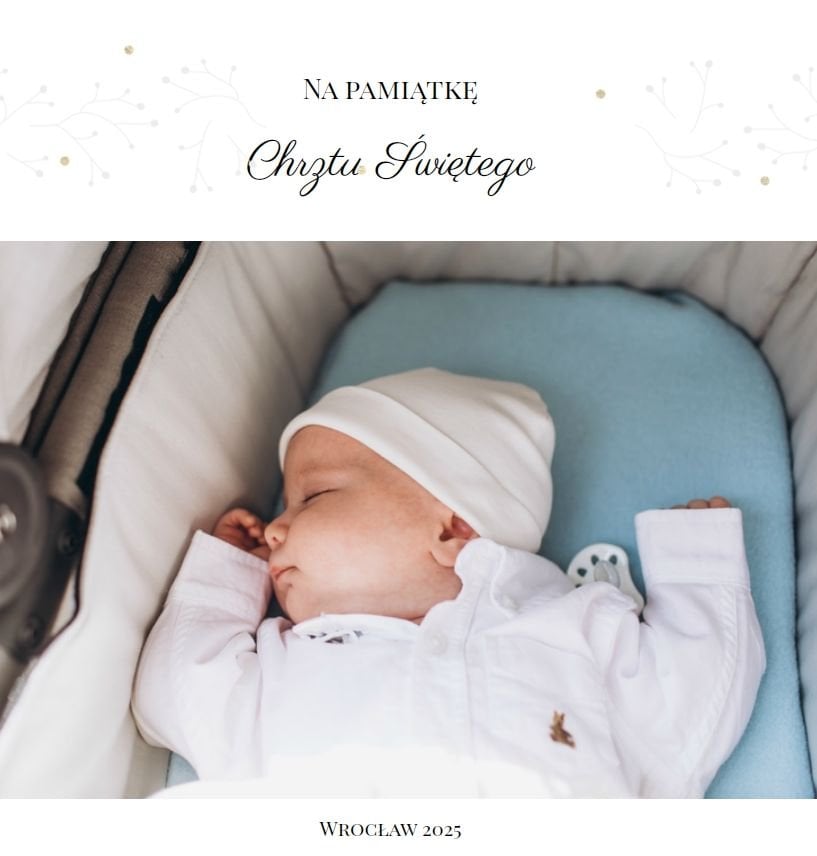 Z szablonem Chrzciny uwiecznisz piękne momenty z Chrztu Świętego Twojego dziecka. Zbierz zdjęcia i zaprojektuj wyjątkową fotoksiążkę, która będzie pamiątką na wiele, wiele lat. Oryginalny szablon z delikatną grafiką i mnóstwem miejsca na piękne zdjęcia oraz wzruszające cytaty sprawią, że fotoksiążka z szablonem Chrzciny będzie wzruszać za każdym razem, gdy po nią sięgniesz.