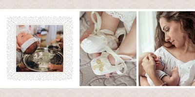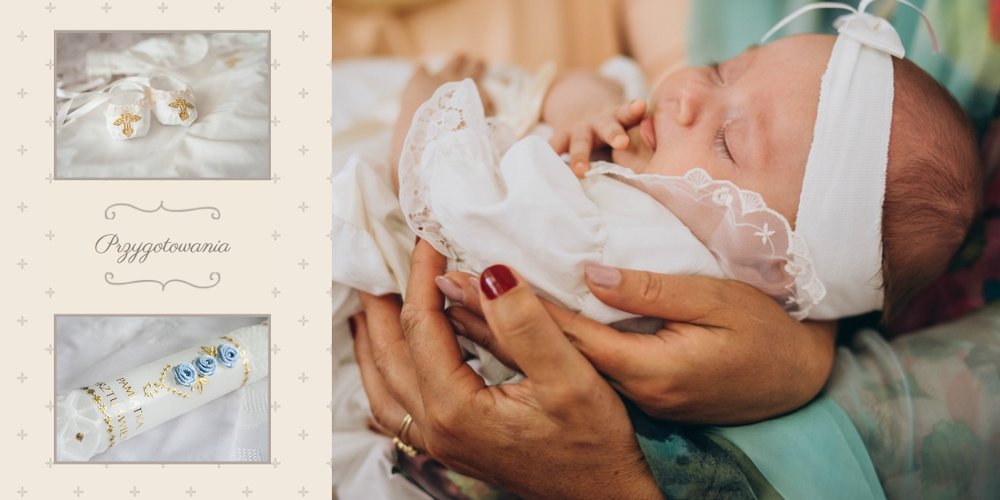 Szablon Dzień Chrztu Świętego idealnie sprawdzi się przy projektowaniu fotoksiążki dziecka upamiętniającej przyjęcie Sakramentu Chrztu Świętego. Beżowe tła idealnie skomponują się ze zdjęciami maleństwa, a dodatki w postaci ornamentów, ramek, wzorów i monogramów dodadzą projektowi elegancji. Szablon idealny na prezent dla Rodziców Chrzestnych oraz jako pamiątka Chrztu Świętego. Szablon Dzień Chrztu Świętego tworzy serię razem z szablonami Dzień Komunii Świętej oraz Dzień Ślubu.