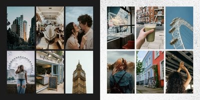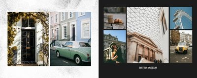 Fotoalbum City Break - Londyn został zaprojektowany w duchu prostoty i miejskiego stylu. Bordowe kolory okładki nawiązujące do klimatycznych, ceglanych budynków idealnie podkreślą zdjęcia każdego angielskiego miasta. W środku natomiast królują czerń, szarość i biel, które będą pasować do każdej miejskiej fotografii. Minimalistyczny design oraz prostota układu komórek zdjęciowych sprawdzą się idealnie przy ogromnej ilości zdjęć, robionych podczas weekendowego wypadu.