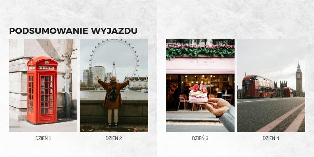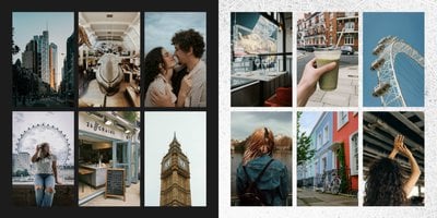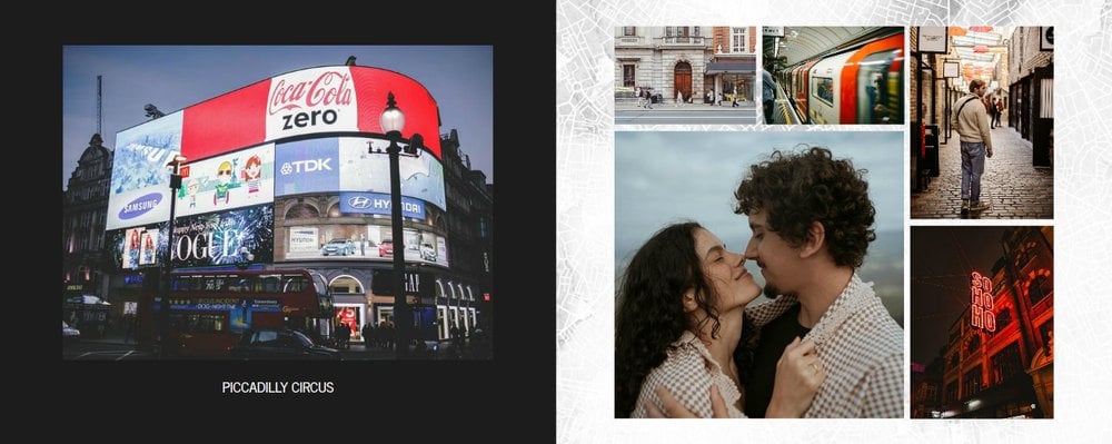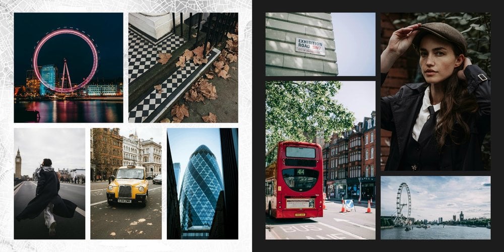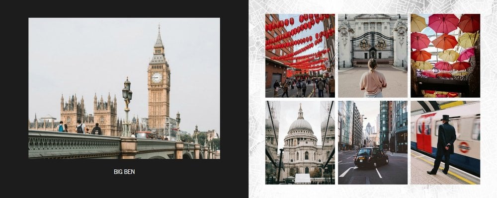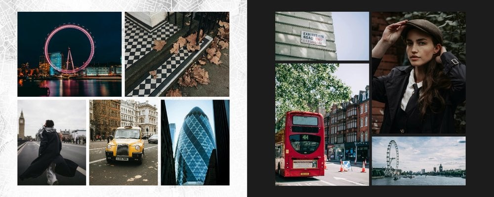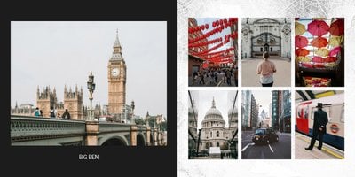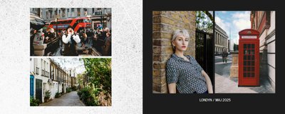 Fotoalbum City Break - Londyn został zaprojektowany w duchu prostoty i miejskiego stylu. Bordowe kolory okładki nawiązujące do klimatycznych, ceglanych budynków idealnie podkreślą zdjęcia każdego angielskiego miasta. W środku natomiast królują czerń, szarość i biel, które będą pasować do każdej miejskiej fotografii. Minimalistyczny design oraz prostota układu komórek zdjęciowych sprawdzą się idealnie przy ogromnej ilości zdjęć, robionych podczas weekendowego wypadu.