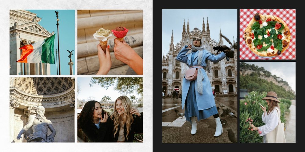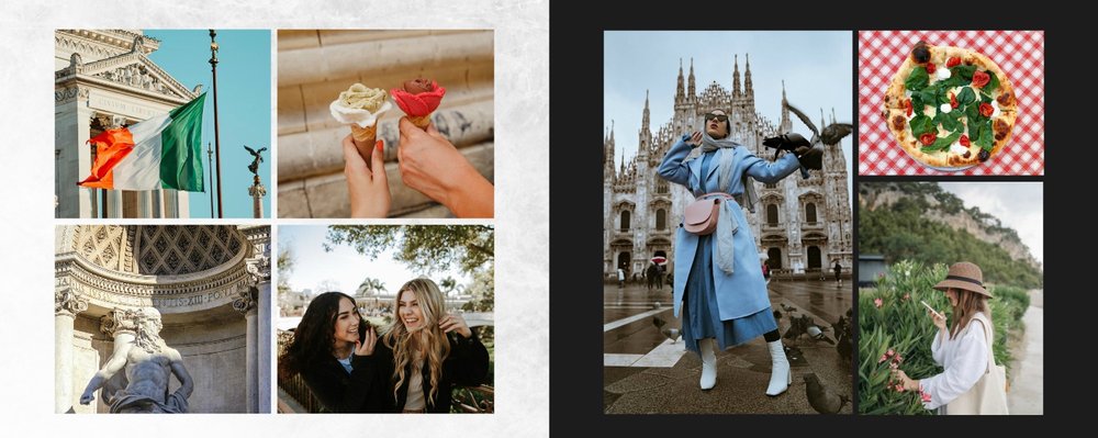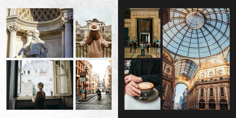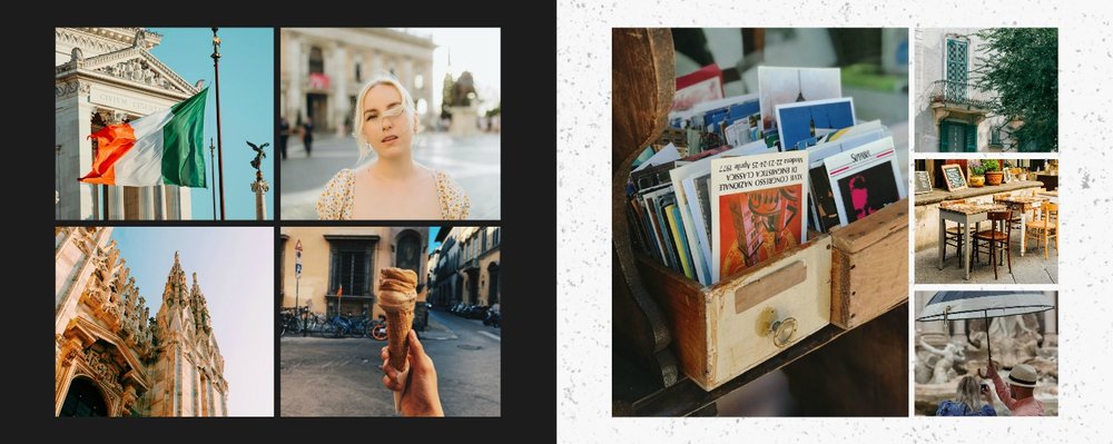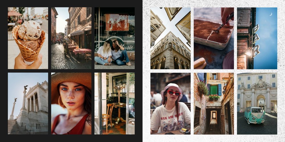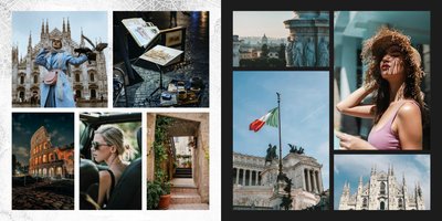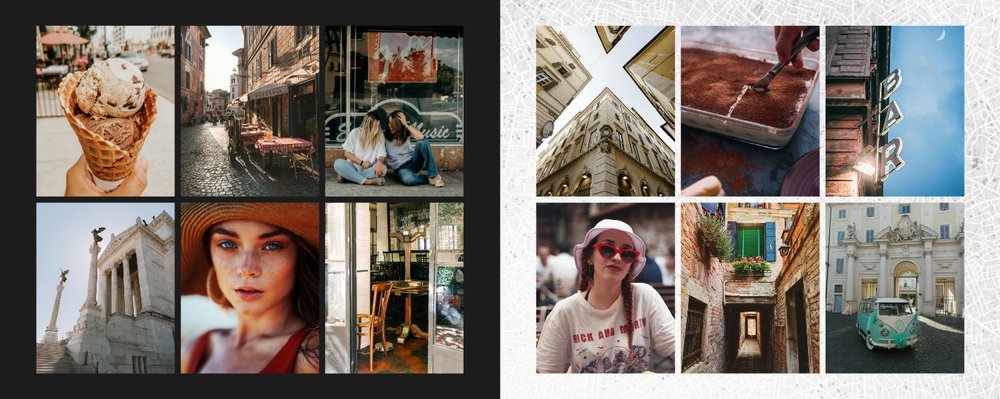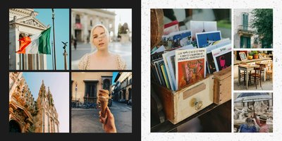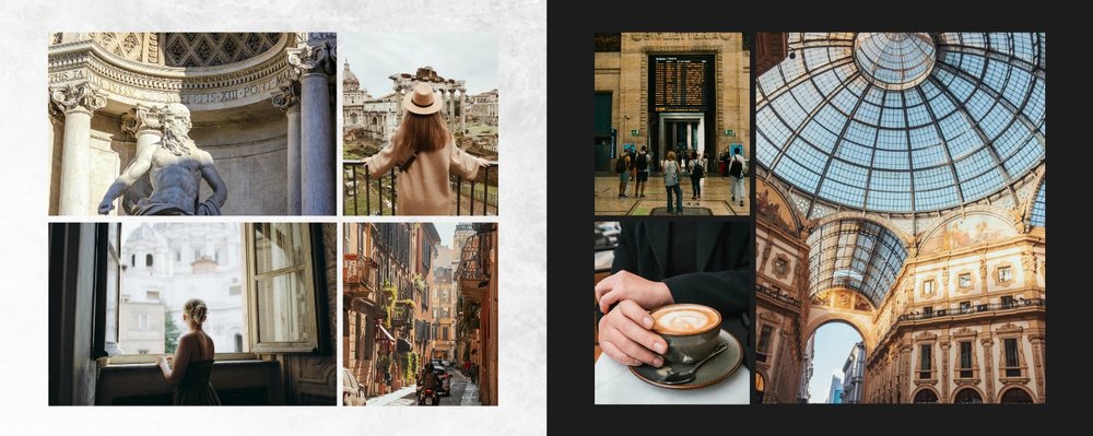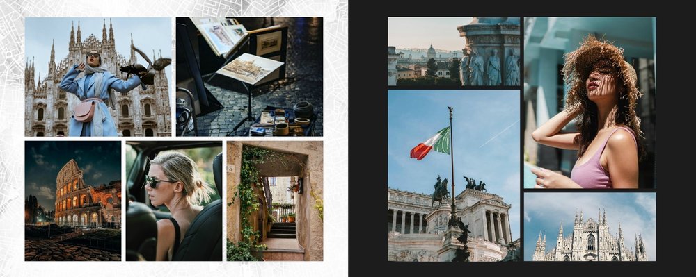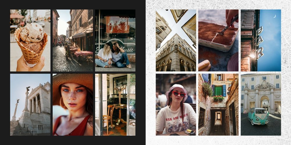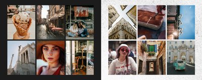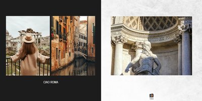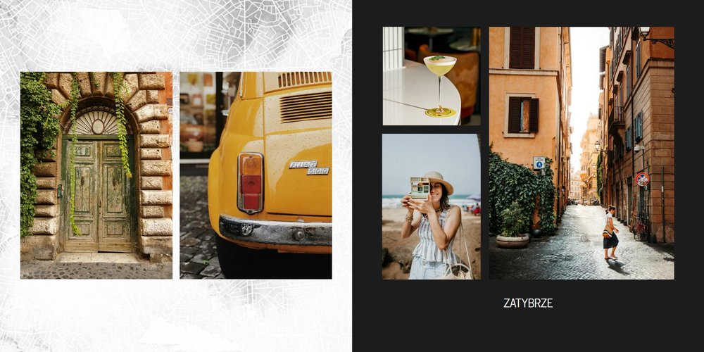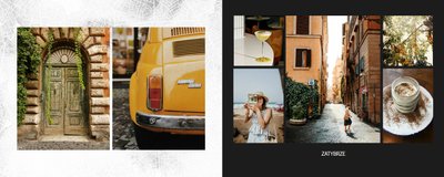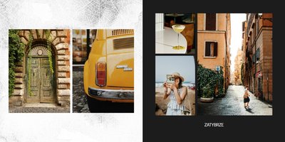 Fotoalbum City Break - Rzym został zaprojektowany w duchu prostoty i miejskiego stylu. Zielone kolory okładki nawiązujące do zielonego odcienia na włoskiej fladze idealnie podkreślą zdjęcia robione na tle klimatycznych, włoskich uliczek i budynków. W środku natomiast królują czerń, szarość i biel, które będą pasować do każdej miejskiej fotografii. Minimalistyczny design oraz prostota układu komórek zdjęciowych sprawdzą się idealnie przy ogromnej ilości zdjęć, robionych podczas weekendowego wypadu.