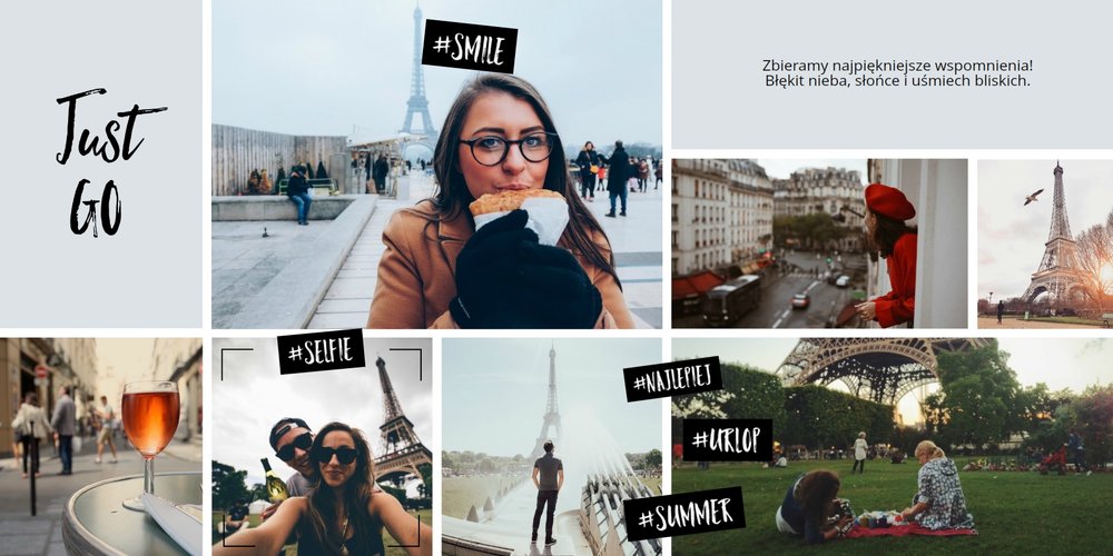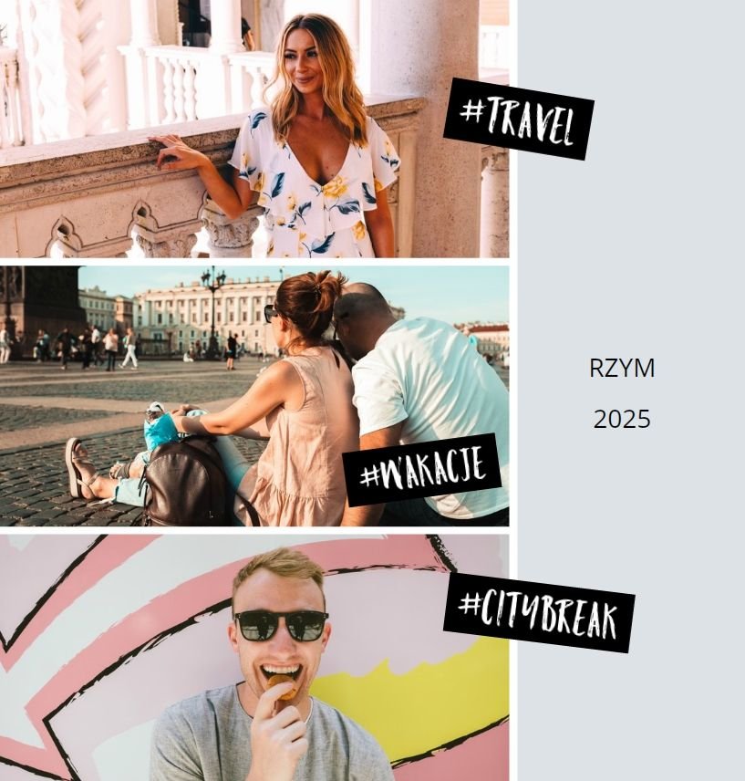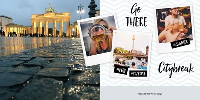 Citybreak, to propozycja dla miłośników krótkich wycieczek, idealna na wydrukowanie zdjęć z weekendowego wyjazdu, ale nie tylko. W szablonie znajdziemy różnokolorowe tła oraz dodatki w postaci hashtagów, strzałek i polaroidów. Fotoalbum Citybreak będzie świetną pamiątką z wycieczek objazdowych oraz idealnym prezentem dla przyjaciół.