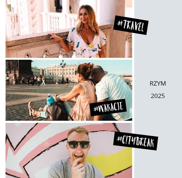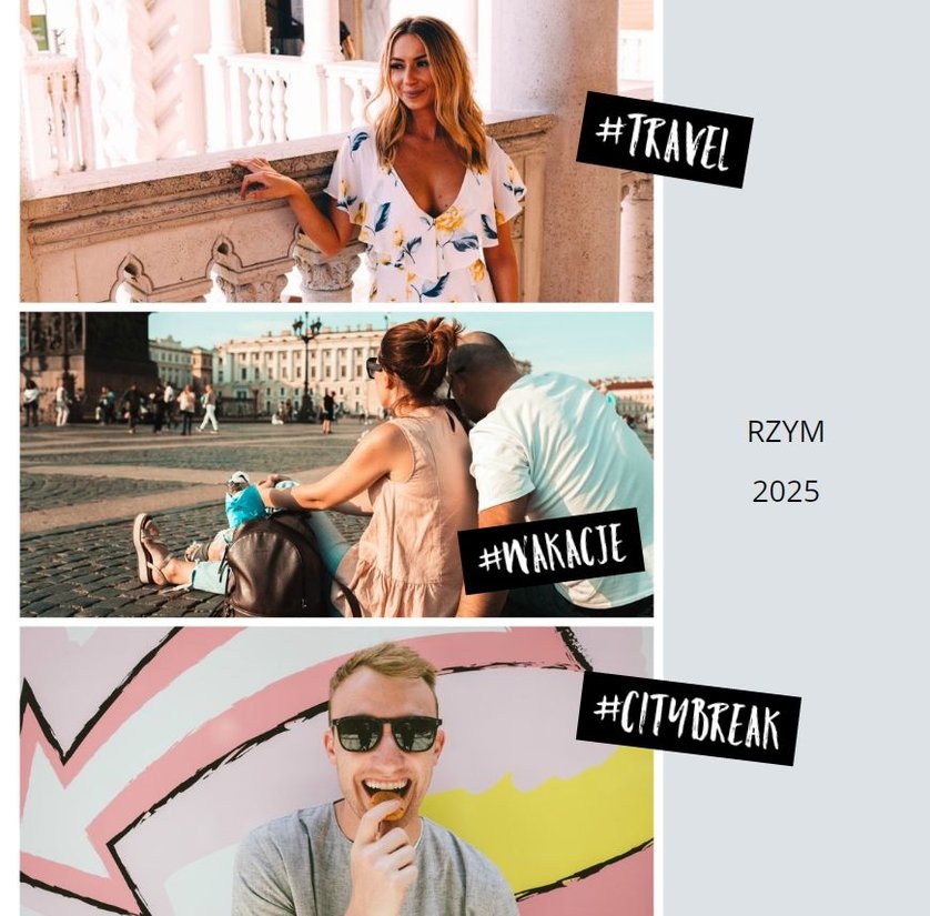 Citybreak, to propozycja dla miłośników krótkich wycieczek, idealna na wydrukowanie zdjęć z weekendowego wyjazdu, ale nie tylko. W szablonie znajdziemy różnokolorowe tła oraz dodatki w postaci hashtagów, strzałek i polaroidów. Fotoalbum Citybreak będzie świetną pamiątką z wycieczek objazdowych oraz idealnym prezentem dla przyjaciół.
