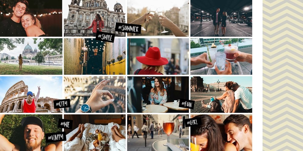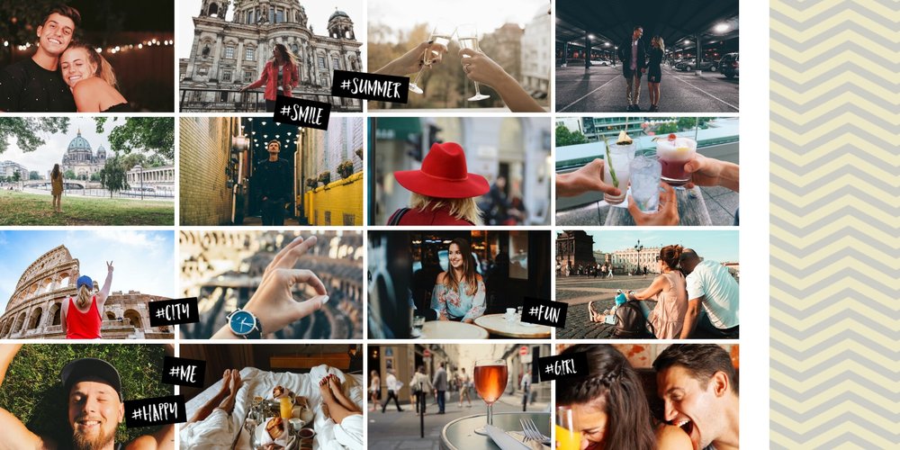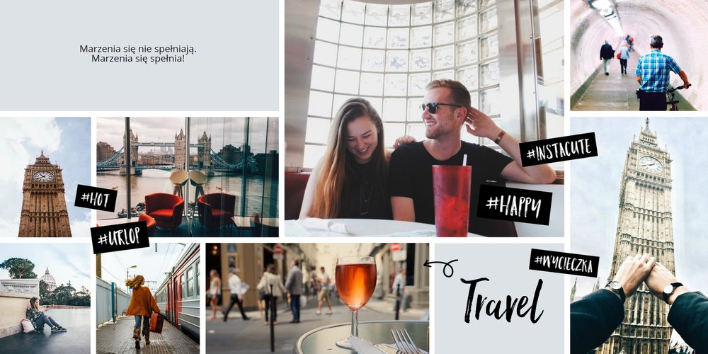 Citybreak, to propozycja dla miłośników krótkich wycieczek, idealna na wydrukowanie zdjęć z weekendowego wyjazdu, ale nie tylko. W szablonie znajdziemy różnokolorowe tła oraz dodatki w postaci hashtagów, strzałek i polaroidów. Fotoalbum Citybreak będzie świetną pamiątką z wycieczek objazdowych oraz idealnym prezentem dla przyjaciół.