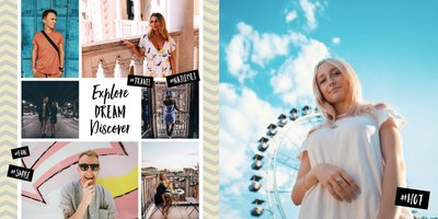 Citybreak, to propozycja dla miłośników krótkich wycieczek, idealna na wydrukowanie zdjęć z weekendowego wyjazdu, ale nie tylko. W szablonie znajdziemy różnokolorowe tła oraz dodatki w postaci hashtagów, strzałek i polaroidów. Fotoalbum Citybreak będzie świetną pamiątką z wycieczek objazdowych oraz idealnym prezentem dla przyjaciół.