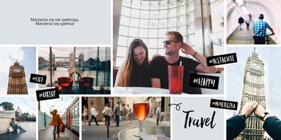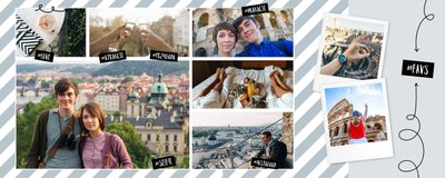 Citybreak, to propozycja dla miłośników krótkich wycieczek, idealna na wydrukowanie zdjęć z weekendowego wyjazdu, ale nie tylko. W szablonie znajdziemy różnokolorowe tła oraz dodatki w postaci hashtagów, strzałek i polaroidów. Fotoalbum Citybreak będzie świetną pamiątką z wycieczek objazdowych oraz idealnym prezentem dla przyjaciół.
