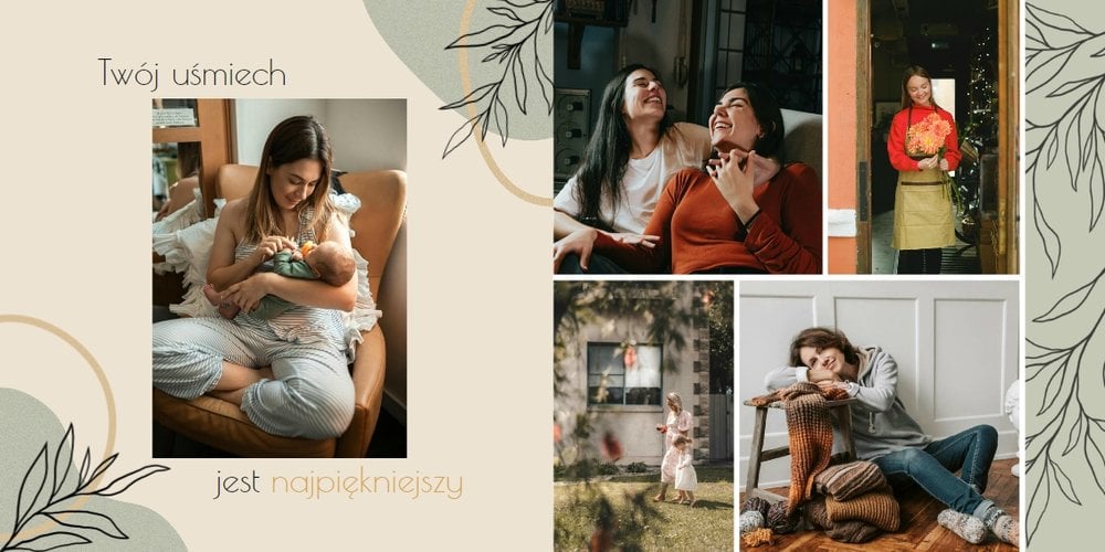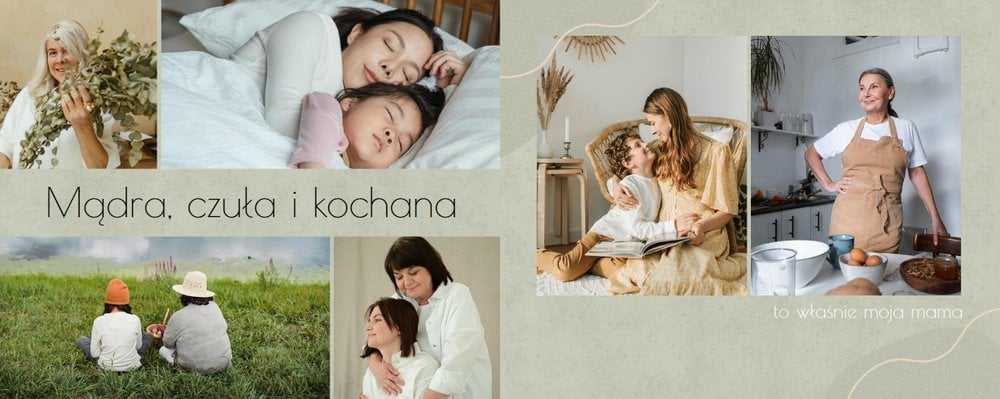 Zaprojektuj fotoalbum wypełniając go rodzinnymi zdjęciami oraz portretami Twojej Mamy. Szablon został zaprojektowany bazując na wiosennych kolorach i wzorach, nawiązujących do majowego święta. Jasna zieleń, musztardowy żółty i beż podkreślą urok zdjęć każdej Mamy, a geometryczne wzory połączone z minimalistycznym stylem boho dodadzą całości unikatowego stylu. Szablon został wypełniony w czułe teksty, które każda Mama powinna usłyszeć - nie tylko na Dzień Mamy.