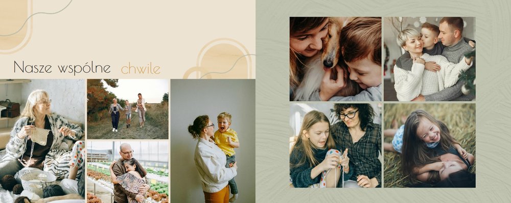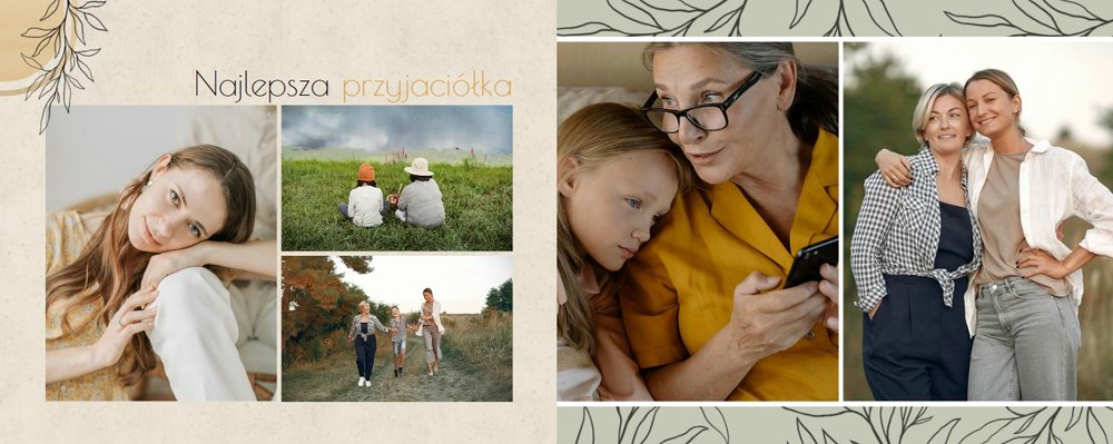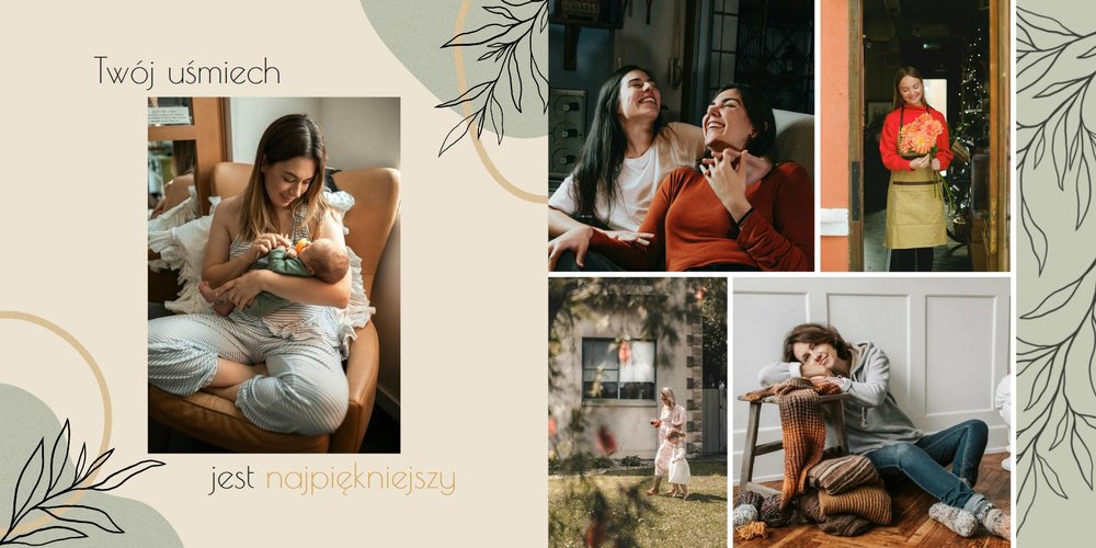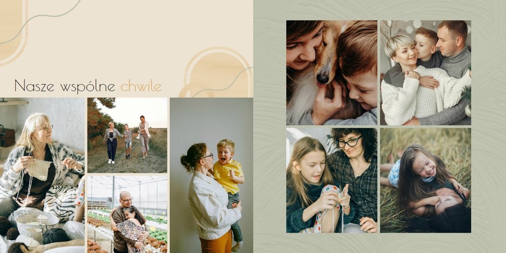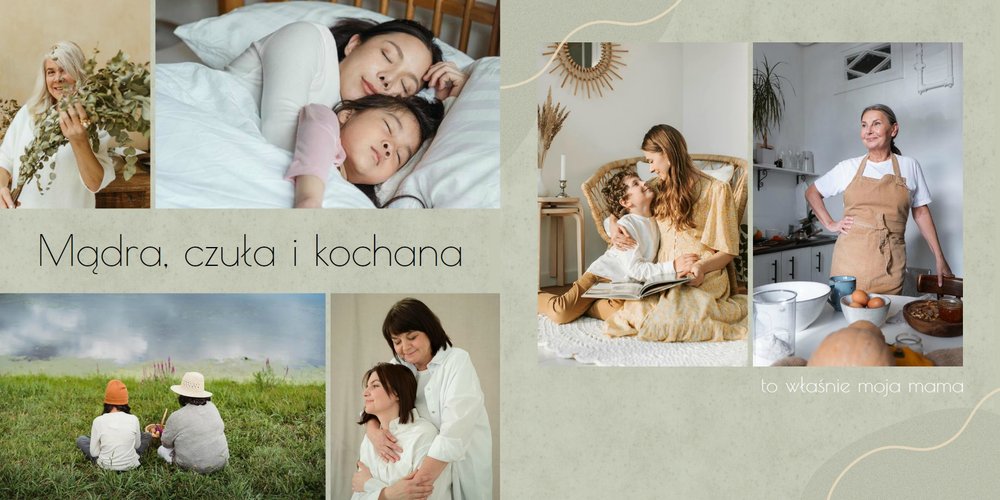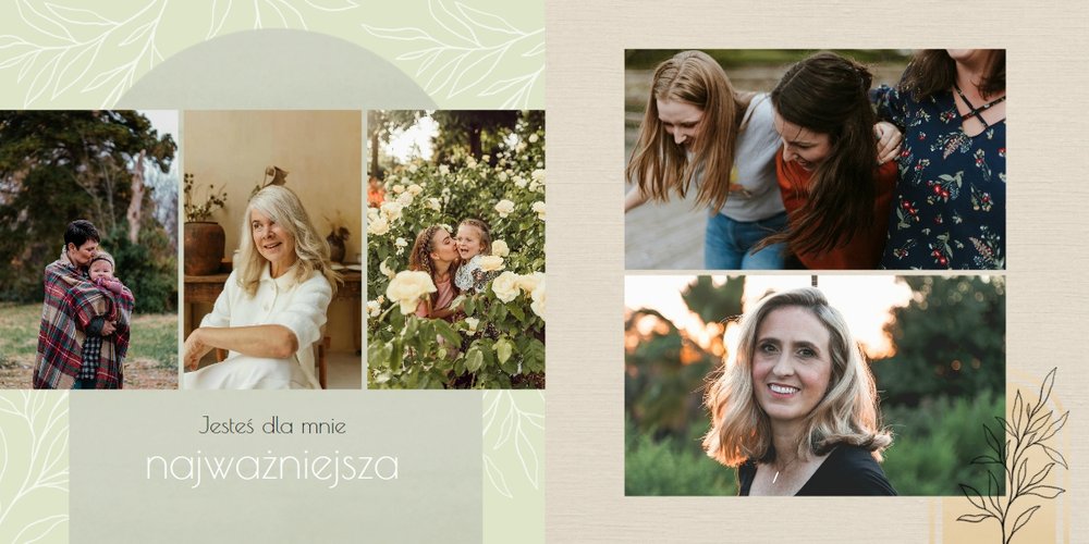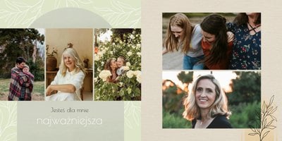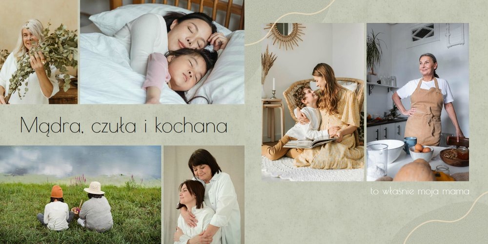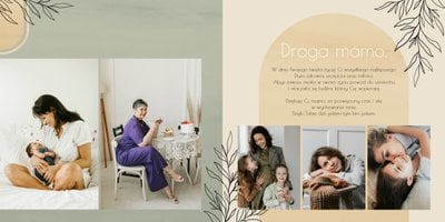 Zaprojektuj fotoalbum wypełniając go rodzinnymi zdjęciami oraz portretami Twojej Mamy. Szablon został zaprojektowany bazując na wiosennych kolorach i wzorach, nawiązujących do majowego święta. Jasna zieleń, musztardowy żółty i beż podkreślą urok zdjęć każdej Mamy, a geometryczne wzory połączone z minimalistycznym stylem boho dodadzą całości unikatowego stylu. Szablon został wypełniony w czułe teksty, które każda Mama powinna usłyszeć - nie tylko na Dzień Mamy.