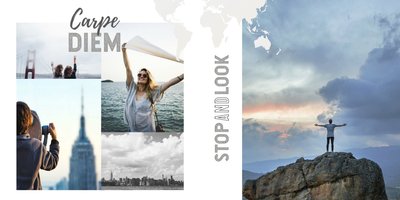 Spełniłeś marzenie i odwiedziłeś upragnione miejsce na świecie? Przeżyłeś wakacje życia? Nic straconego! Dzięki fotoalbumowi z szablonem "Dookoła świata" Twoja podróż wiecznie będzie żywa. Choćby w Twoich wspomnieniach! Zachowaj najpiękniejsze kadry wewnątrz tego minimalistycznego szablonu i ciesz się wakacyjnymi wspomnieniami przez cały rok. Całość dopełnią graficzne napisy w odcieniach szarości i czerni - niech kolory Twoich wspomnień zabarwią fotoalbum. Tak przygotowany fotoalbum będzie pamiątką na całe lata!