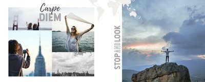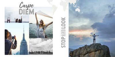 Spełniłeś marzenie i odwiedziłeś upragnione miejsce na świecie? Przeżyłeś wakacje życia? Nic straconego! Dzięki fotoalbumowi z szablonem "Dookoła świata" Twoja podróż wiecznie będzie żywa. Choćby w Twoich wspomnieniach! Zachowaj najpiękniejsze kadry wewnątrz tego minimalistycznego szablonu i ciesz się wakacyjnymi wspomnieniami przez cały rok. Całość dopełnią graficzne napisy w odcieniach szarości i czerni - niech kolory Twoich wspomnień zabarwią fotoalbum. Tak przygotowany fotoalbum będzie pamiątką na całe lata!