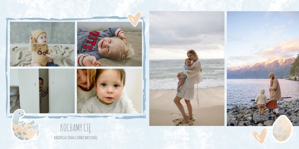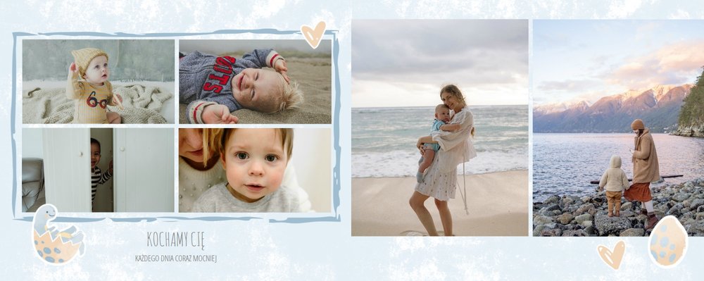 Szablon “Drugi rok synka” to idealna propozycja na prezent dla dziecka nie tylko od mamy, ale również od cioci, babci czy matki chrzestnej (np. jako prezent na urodziny). Tak wywołane zdjęcia w formie fotoalbumu przyniosą radość na lata każdemu dziecku.