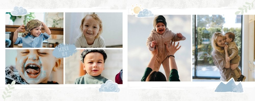 Szablon “Drugi rok synka” to idealna propozycja na prezent dla dziecka nie tylko od mamy, ale również od cioci, babci czy matki chrzestnej (np. jako prezent na urodziny). Tak wywołane zdjęcia w formie fotoalbumu przyniosą radość na lata każdemu dziecku.