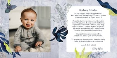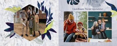 Z szablonem fotoalbumu "Dzień Dziadka" wyczarujesz niezwykły prezent, pełen najbardziej wyjątkowych wspomnień. Nowoczesny design z subtelnymi elementami florystycznymi, zachowany w chłodnej kolorystyce, zachwyci każdego mężczyznę. Skorzystaj z gotowego szablonu i wypełnij rozkładówki uroczymi zdjęciami Twojego malucha lub edytuj wewnętrzne strony fotoalbumu według własnego pomysłu. Możesz dostosować liczbę stron, układ komórek zdjęciowych, elementy ozdobne oraz treść. W imieniu dziecka wręcz swojemu Tacie lub Teściowi najpiękniejszy prezent z okazji ich styczniowego święta.