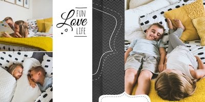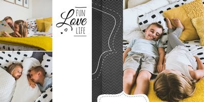 Oto szablon, który będzie idealnym miejscem na Wasze piękne wspomnienia. Zawiera ciekawe czcionki, różnorodne układy zdjęć oraz miejsca na własne komentarze. Dodaj do projektu swoje ulubione fotografie i ciesz się projektowaniem. Stwórz wyjątkową fotoksiążkę, która będzie piękną pamiątką na całe życie! To szablon typu "everyday life", który nadaje się na wiele okazji.