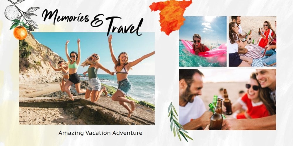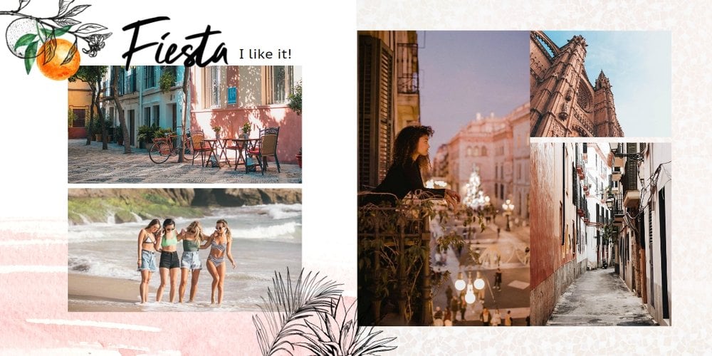 Wakacje w Hiszpanii uważasz za udane? Świetnie! Zadbaj o każdy moment i zaprojektuj oryginalny fotoalbum, w której przechowasz wszystkie najważniejsze dla Ciebie momenty. Szablon Hola, hola to minimalistyczna propozycja, w którą idealnie wkomponujesz Twoje hiszpańskie kadry. Wewnątrz szablonu znajdziesz charakterystyczne grafiki, napisy oraz nowoczesne elementy graficzne - to one dopełnią Twoje zdjęcia i nadadzą niepowtarzalnego efektu. Uzupełnij szablon i ważne dla Ciebie chwile, napisy i stwórz niezwykłą pamiątkę na całe życie.