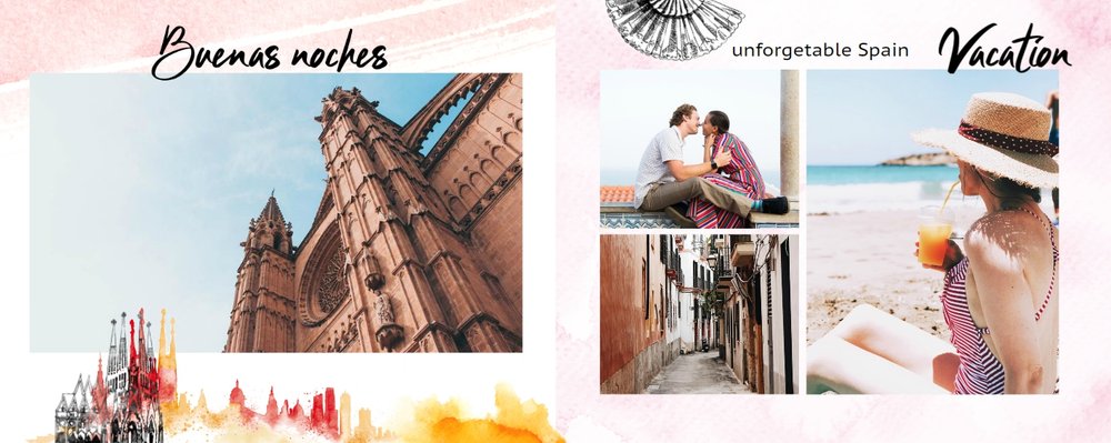 Wakacje w Hiszpanii uważasz za udane? Świetnie! Zadbaj o każdy moment i zaprojektuj oryginalny fotoalbum, w której przechowasz wszystkie najważniejsze dla Ciebie momenty. Szablon Hola, hola to minimalistyczna propozycja, w którą idealnie wkomponujesz Twoje hiszpańskie kadry. Wewnątrz szablonu znajdziesz charakterystyczne grafiki, napisy oraz nowoczesne elementy graficzne - to one dopełnią Twoje zdjęcia i nadadzą niepowtarzalnego efektu. Uzupełnij szablon i ważne dla Ciebie chwile, napisy i stwórz niezwykłą pamiątkę na całe życie.