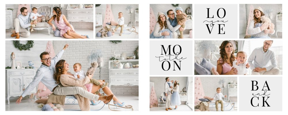 Szablon Just Love opiera się na zestawieniu ciekawych układów zdjęć z gotowymi napisami. Białe tła i delikatne motywy nie przytłaczają całości i pozwalają Twoim zdjęciom grać główną rolę. Ten uniwersalny szablon nadaje się na każdą okazję, więc nie zwlekaj i stwórz z nim swój wymarzony fotoalbum!