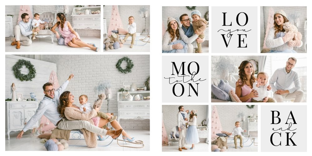 Szablon Just Love opiera się na zestawieniu ciekawych układów zdjęć z gotowymi napisami. Białe tła i delikatne motywy nie przytłaczają całości i pozwalają Twoim zdjęciom grać główną rolę. Ten uniwersalny szablon nadaje się na każdą okazję, więc nie zwlekaj i stwórz z nim swój wymarzony fotoalbum!