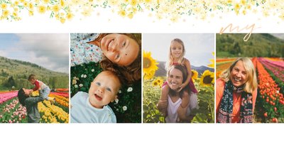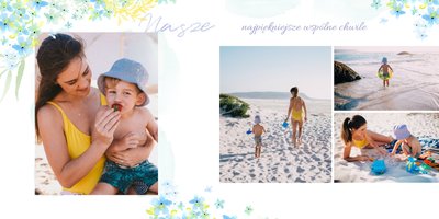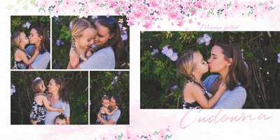 Na Dzień mamy przygotuj idealny prezent! Wybierając szablon Kochanej Mamie stworzysz oryginalną fotoksiążkę wypełnioną, nie tylko wspólnymi zdjęciami, ale także wspomnieniami! Zaprojektowanie tego prezentu zajmie Ci zaledwie kilka minut, a wzruszeniom z przeglądania nie będzie końca. Układ graficzny jest minimalistyczny, a jednocześnie przepełniony kolorem pięknych kwiatów. Szablon jest niezwykle kobiecy, zatem z pewnością spodoba się każdej Mamie. Na stronach możesz zamieścić życzenia, a ramki wypełnić o wspólne fotografie.