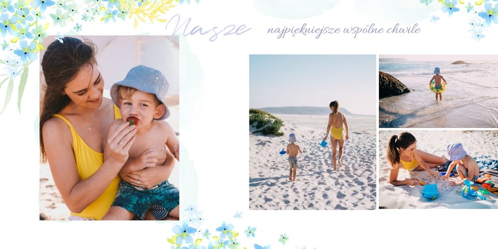 Na Dzień mamy przygotuj idealny prezent! Wybierając szablon Kochanej Mamie stworzysz oryginalną fotoksiążkę wypełnioną, nie tylko wspólnymi zdjęciami, ale także wspomnieniami! Zaprojektowanie tego prezentu zajmie Ci zaledwie kilka minut, a wzruszeniom z przeglądania nie będzie końca. Układ graficzny jest minimalistyczny, a jednocześnie przepełniony kolorem pięknych kwiatów. Szablon jest niezwykle kobiecy, zatem z pewnością spodoba się każdej Mamie. Na stronach możesz zamieścić życzenia, a ramki wypełnić o wspólne fotografie.