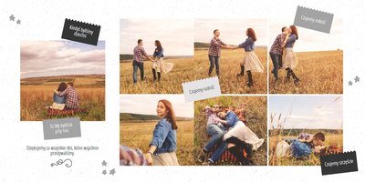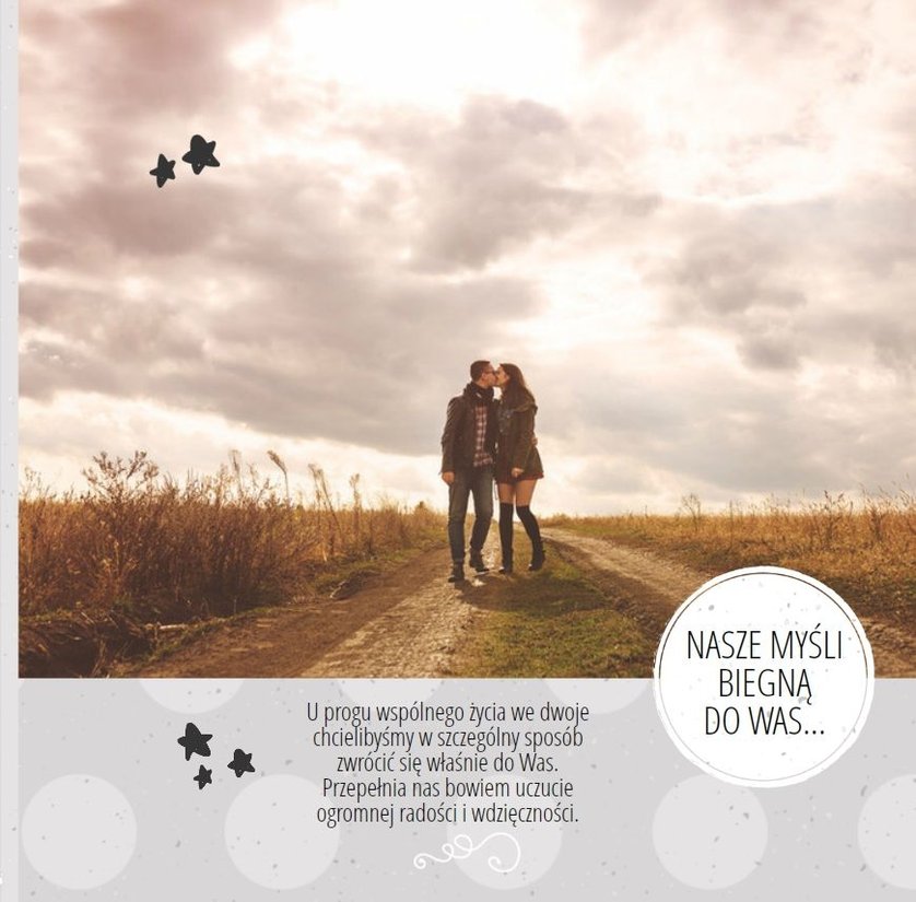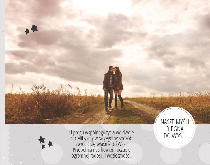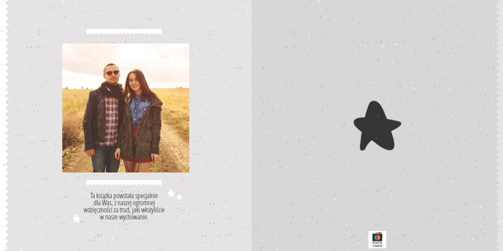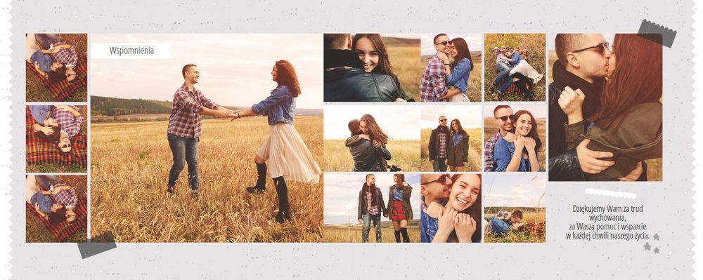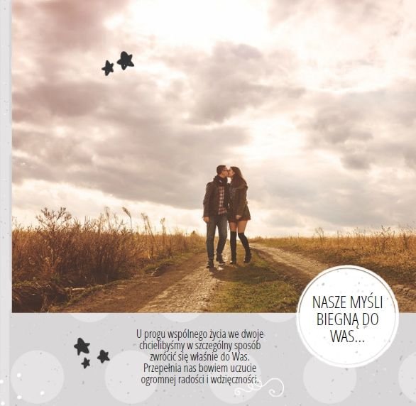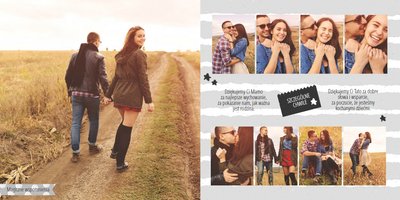 Podziękowanie dla rodziców, to ważny moment na każdym weselu. Wiele par szuka pomysłu na gustowny i niepowtarzalny prezent dla rodziców. Zdjęcia szczęśliwych latorośli będą z pewnością pięknym i ponadczasowym upominkiem. Szablon “Kochanym Rodzicom” idealnie sprawdzi się jako wyraz wdzięczności za miłość i trud wychowania. Książka pozostaje w delikatnych odcieniach bieli i szarości, dodatkowo ozdabiają ją drobne elementy w postaci tasiemek i ramek. Z tym szablonem zaprojektujesz oryginalne podziękowania dla rodziców.