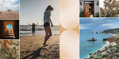 Przygotuj zdjęcia z wakacji i zapisz swoje wspomnienia w kolejnym szablonie fotoalbumie z kolekcji podróżniczej, stworzonym w duchu słonecznego Cypru.