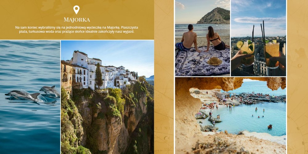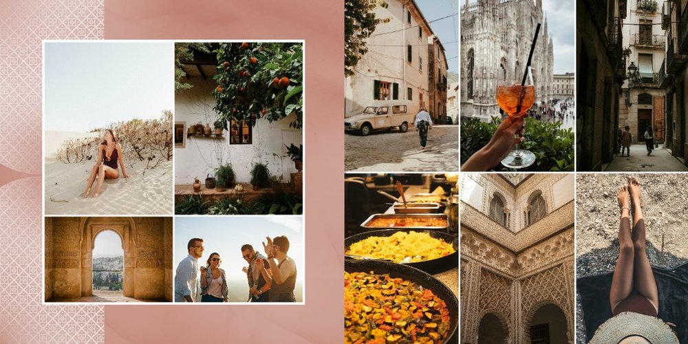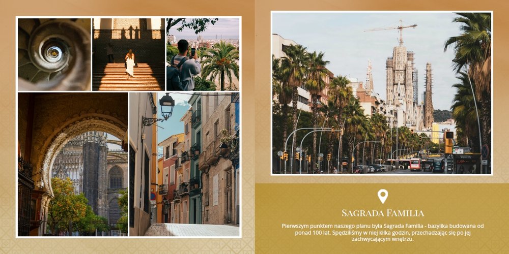 Odkryj szablon fotoalbumu z kolekcji podróżniczej, stworzony z myślą o słonecznej Hiszpanii.