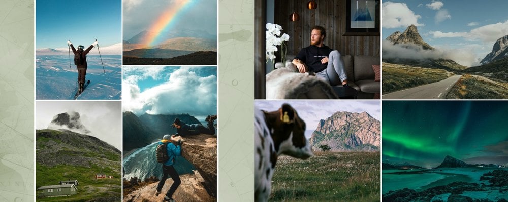 Paleta kolorystyczna szablonu nawiązuje do natury i współgra z chłodnym skandynawskim klimatem. Subtelne wzory na stronach projektu tworzą idealne tło Twoich zdjęć z podróży do Norwegii.