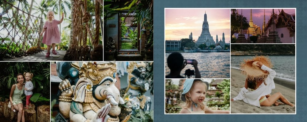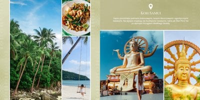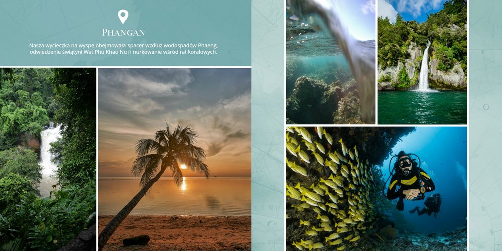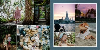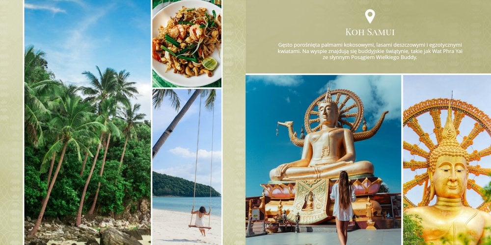 Poznaj szablon fotoalbumu z kolekcji podróżniczej, stworzony z myślą o egzotycznej Tajlandii, której różnorodność zachwyca od pierwszych chwil.