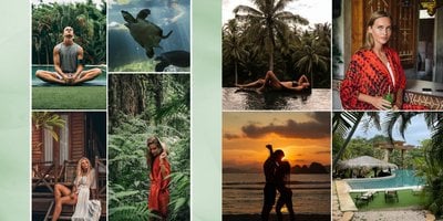 Design szablonu nawiązuje do tajlandzkiego orientu i niepowtarzalnej energii. Kolorystyka bazowa łączy kilka odcieni zieleni i błękitu, czerpiąc z tropikalnych lasów deszczowych, krystalicznej wody oceanów i świeżości powietrza. Subtelne tajskie wzory stanowią dopełnienie zachwycających widoków, zachowanych na Twoich fotografiach.