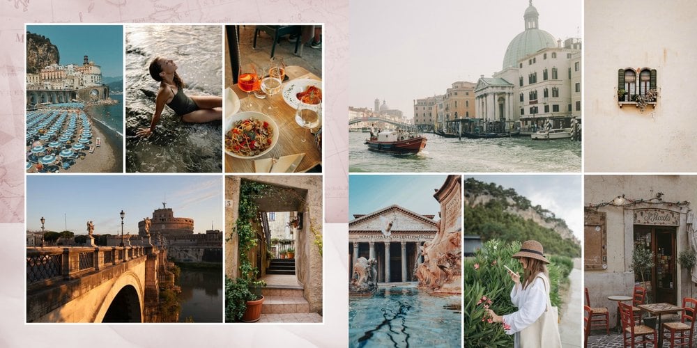 Kolejna odsłona szablonu fotoalbumu z kolekcji podróżniczej, stworzony z myślą o zachwycających Włoszech.