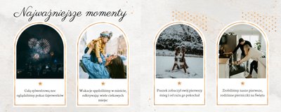 Początek roku to idealny czas na jego podsumowanie, a niezapomniane chwile i wydarzenia, uwiecznione na zdjęciach, warto przechowywać w odpowiedni sposób. Szablon "Kolekcja podsumowania roku" pomoże opowiedzieć Twoją historię w ciekawy i estetyczny sposób.