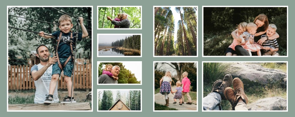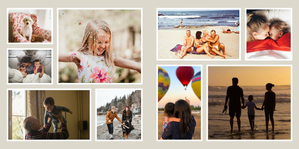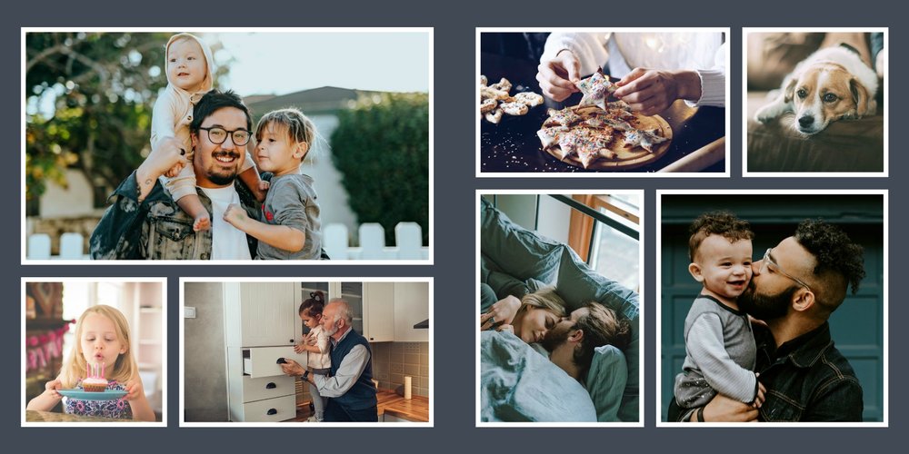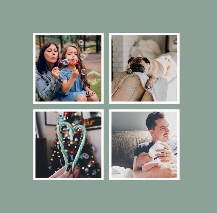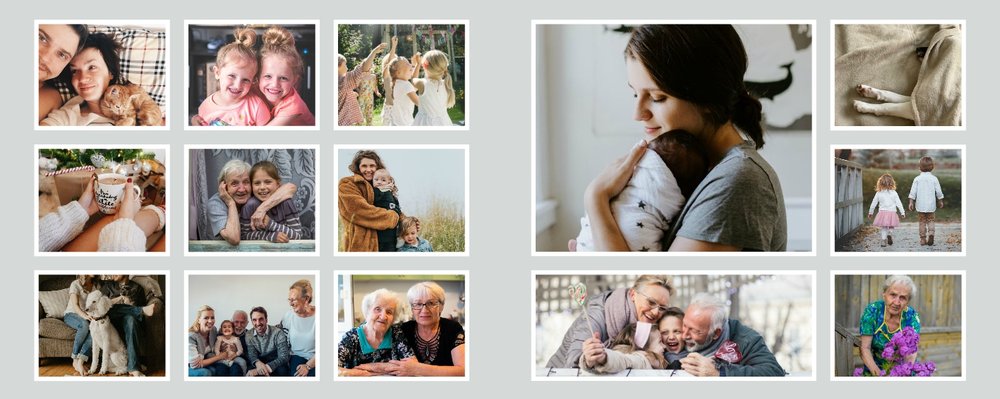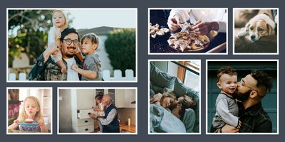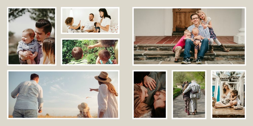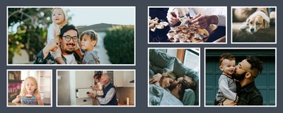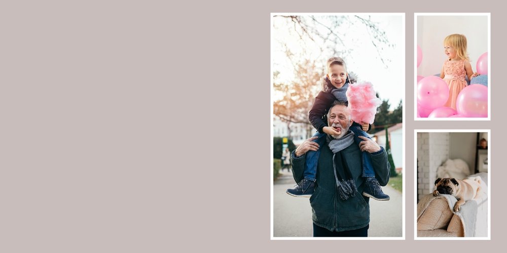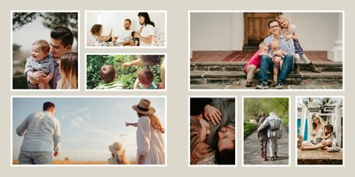 Albumy to skarbnica wspomnień, szczególnie tych rodzinnych. Fotoksiążka to świetna alternatywa, dlatego w szablonie "Kolorowy album na zdjęcia" znajdziesz mnóstwo miejsca na fotografie, które dla Ciebie i Twojej rodziny są najważniejsze. Stworzony na podstawie szablonu "Tradycyjny album na zdjęcia" z zachowaniem minimalistycznego stylu, wzbogacony paletą pięciu pasujących do siebie kolorów. Stonowane beże, szałwia i granat podkreślą Twoje ulubione zdjęcia, jednocześnie zachowując przy tym elegancję tradycyjnego albumu.