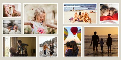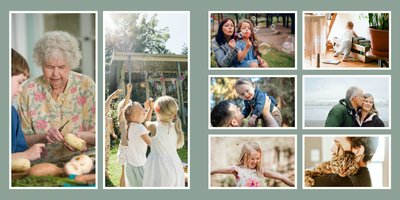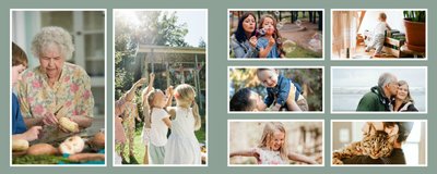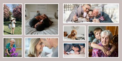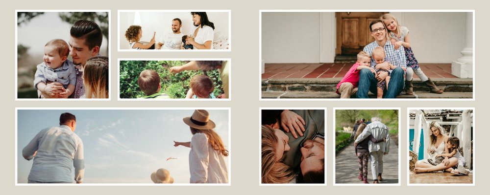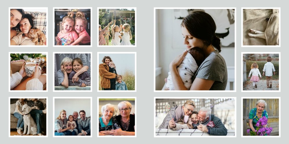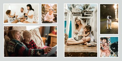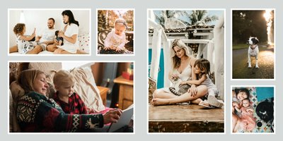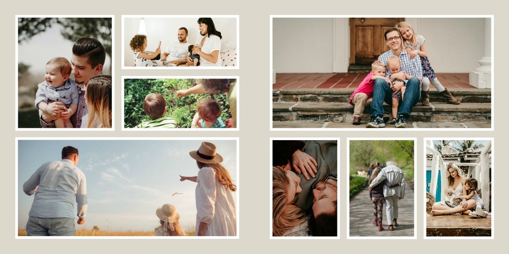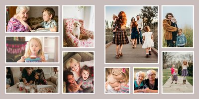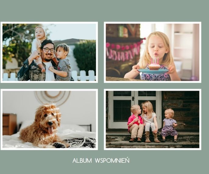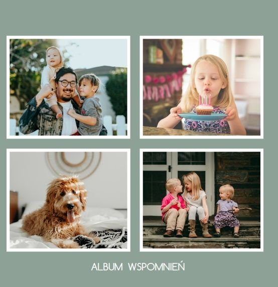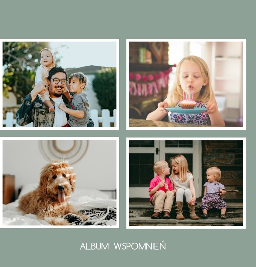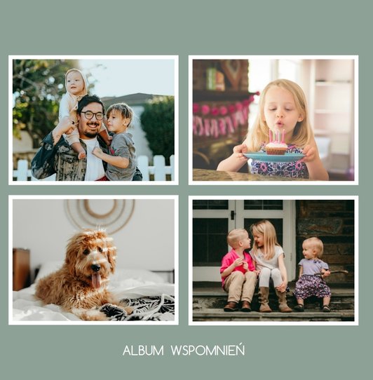 Albumy to skarbnica wspomnień, szczególnie tych rodzinnych. Fotoksiążka to świetna alternatywa, dlatego w szablonie "Kolorowy album na zdjęcia" znajdziesz mnóstwo miejsca na fotografie, które dla Ciebie i Twojej rodziny są najważniejsze. Stworzony na podstawie szablonu "Tradycyjny album na zdjęcia" z zachowaniem minimalistycznego stylu, wzbogacony paletą pięciu pasujących do siebie kolorów. Stonowane beże, szałwia i granat podkreślą Twoje ulubione zdjęcia, jednocześnie zachowując przy tym elegancję tradycyjnego albumu.