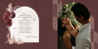 - miejsce z cytatem na ostatniej stronie projektu. Możesz zachować tam dowolny tekst - ulubioną sentencję, fragment piosenki, który jest dla Was ważny (przykładowo, korzystając z utworu wybranego na pierwszy taniec) lub motto, którym Ty i Twój partner się kierujecie;