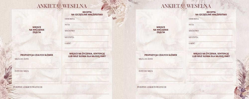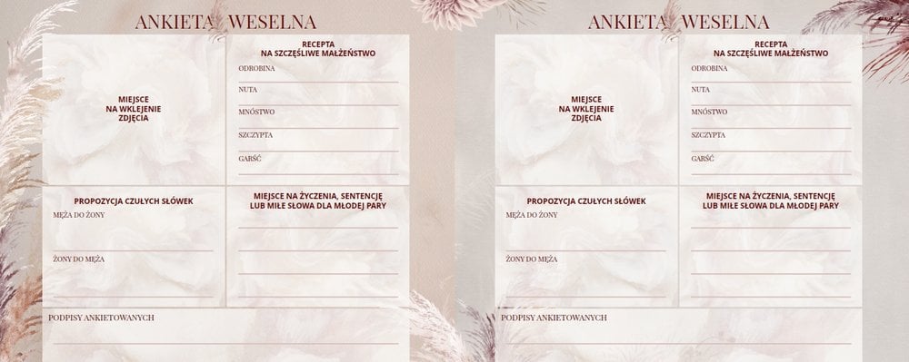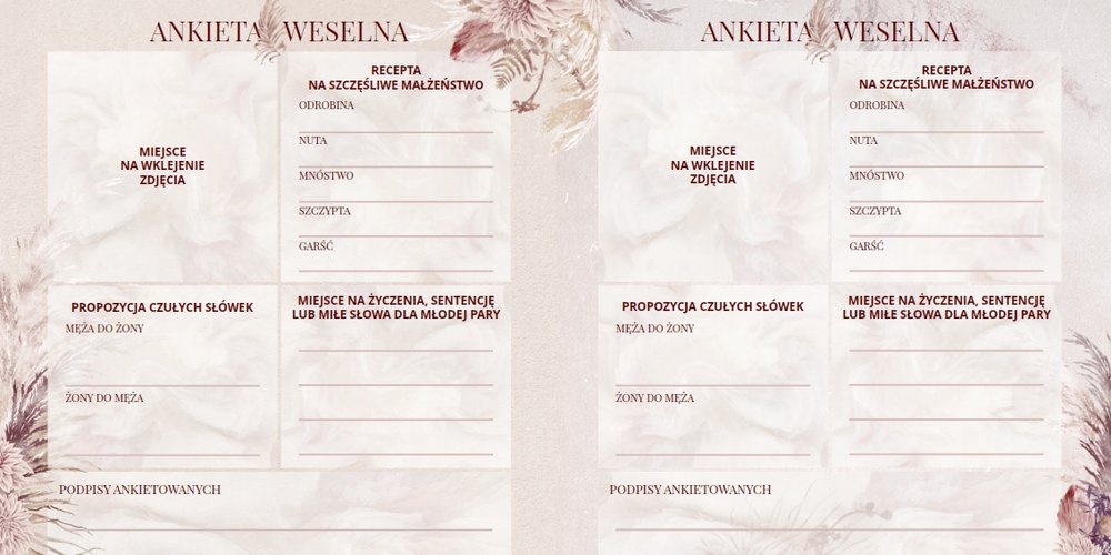 - instrukcję na pierwszej stronie projektu, która w razie wątpliwości podpowie Gościom jak wypełnić weselne ankiety;