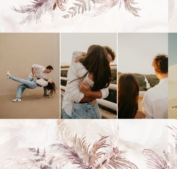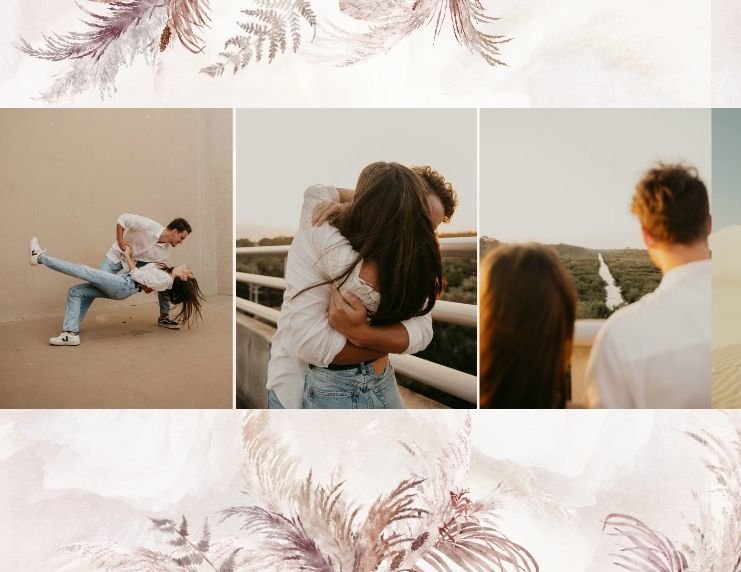 - personalizowaną okładkę z komórkami zdjęciowymi, w których możesz umieścić fotografie z sesji narzeczeńskiej, pierwsze wspólne zdjęcia lub po prostu ujęcia, które darzysz sentymentem;
