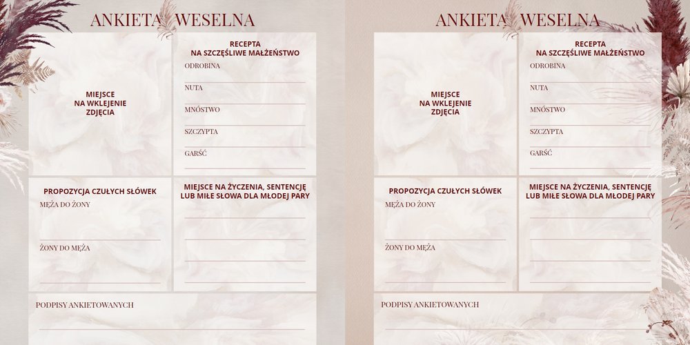 - instrukcję na pierwszej stronie projektu, która w razie wątpliwości podpowie Gościom jak wypełnić weselne ankiety;