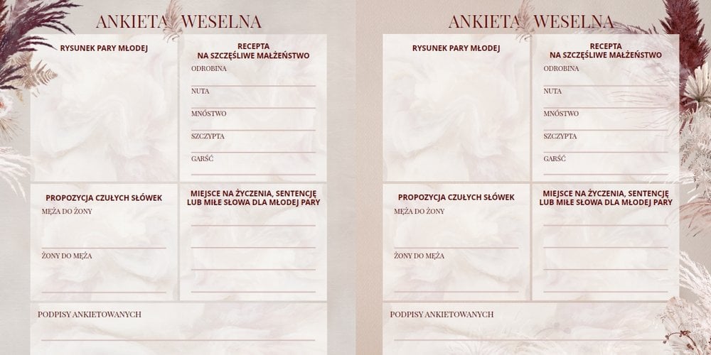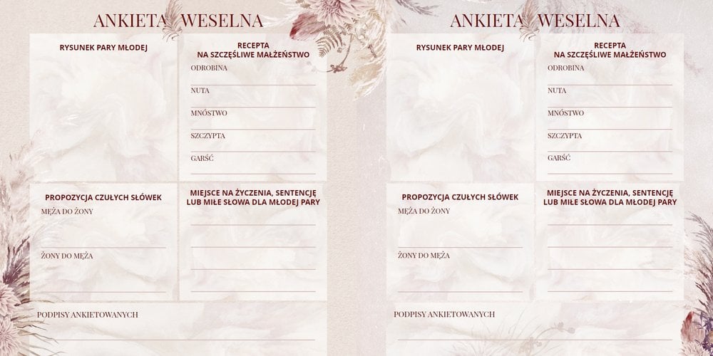 - instrukcję na pierwszej stronie projektu, która w razie wątpliwości podpowie Gościom jak wypełnić weselne ankiety;
