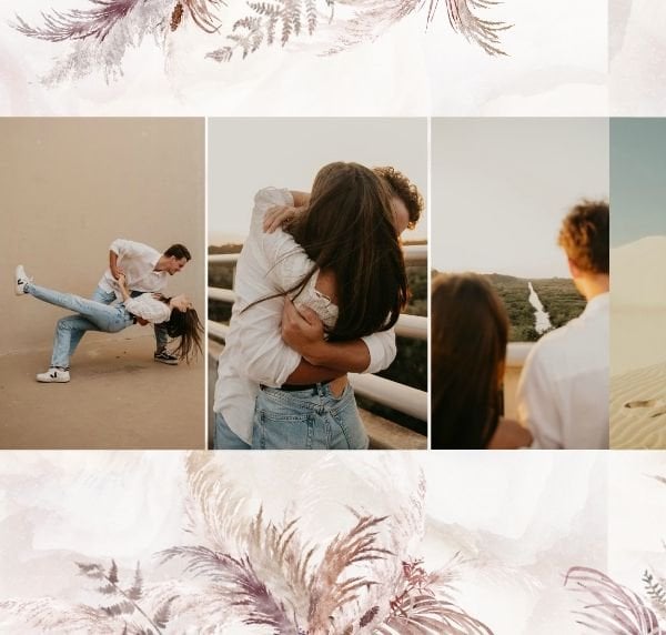 - personalizowaną okładkę z komórkami zdjęciowymi, w których możesz umieścić fotografie z sesji narzeczeńskiej, pierwsze wspólne zdjęcia lub po prostu ujęcia, które darzysz sentymentem;