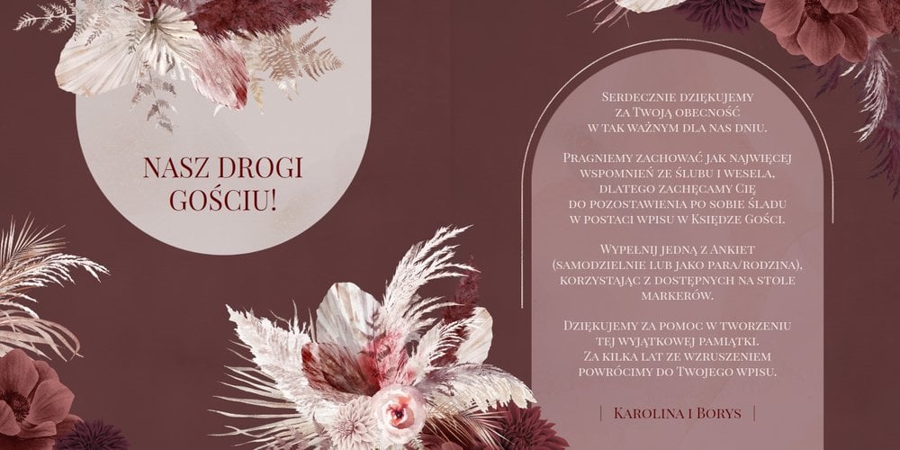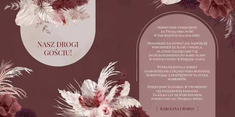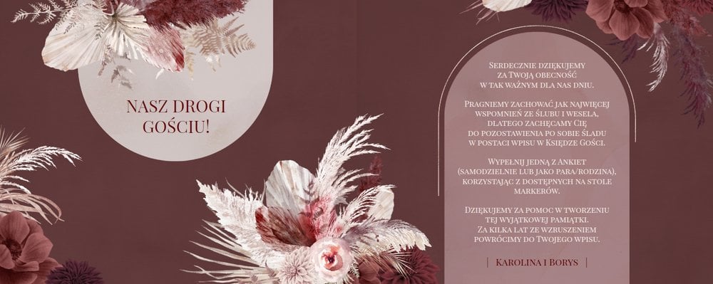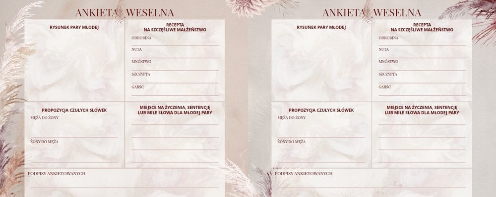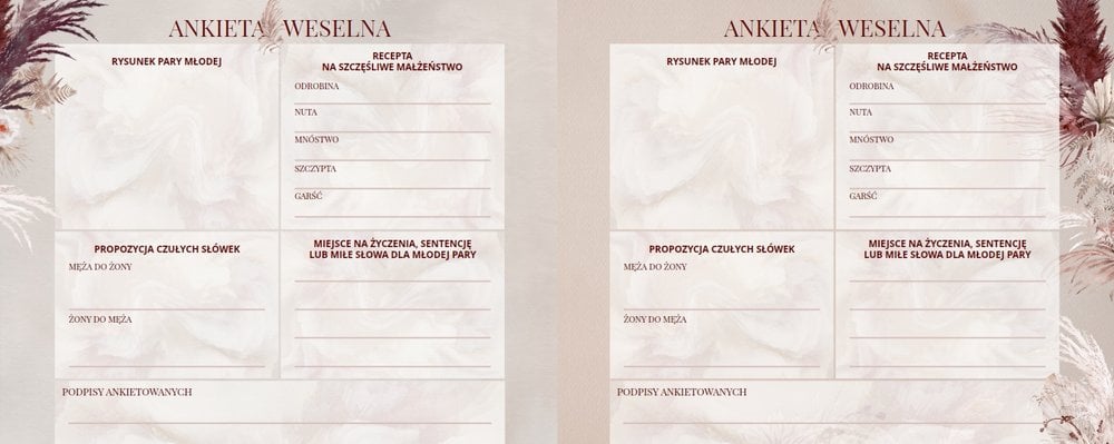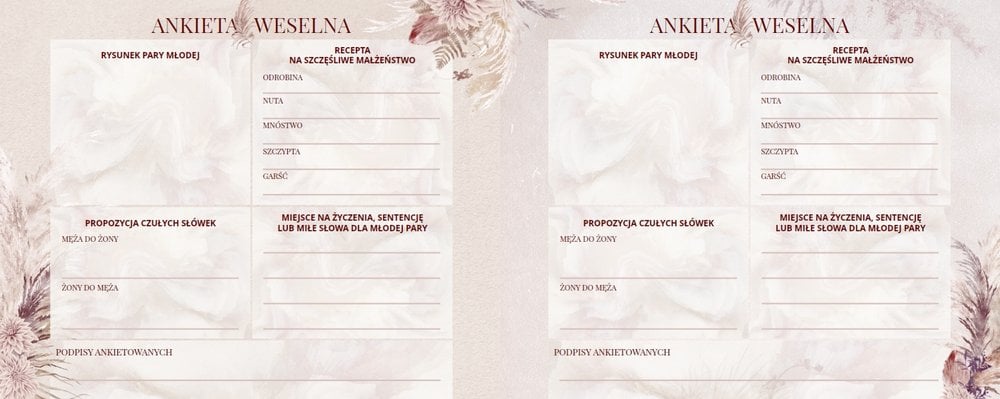 - instrukcję na pierwszej stronie projektu, która w razie wątpliwości podpowie Gościom jak wypełnić weselne ankiety;